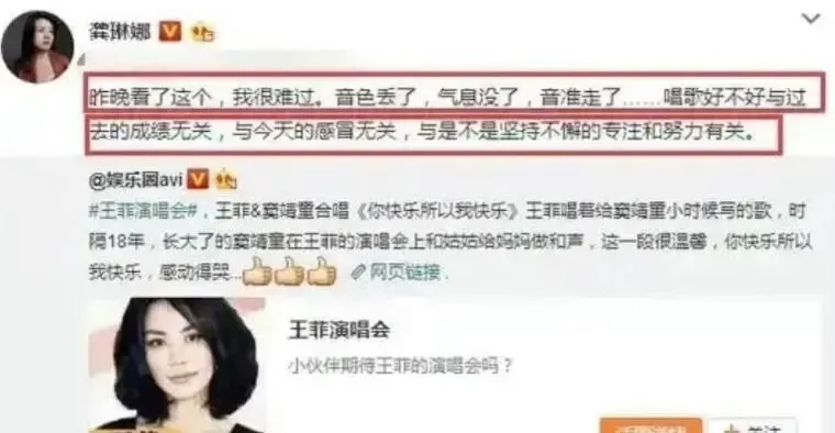 有网友指出王菲的音色略显苍老疲劳,部分段落咬字含糊、气息不稳,甚至有乐评人提及,十年前龚琳娜曾点评她“音色丢了,气息没了,音准走了”,如今这些问题似乎再度显现。