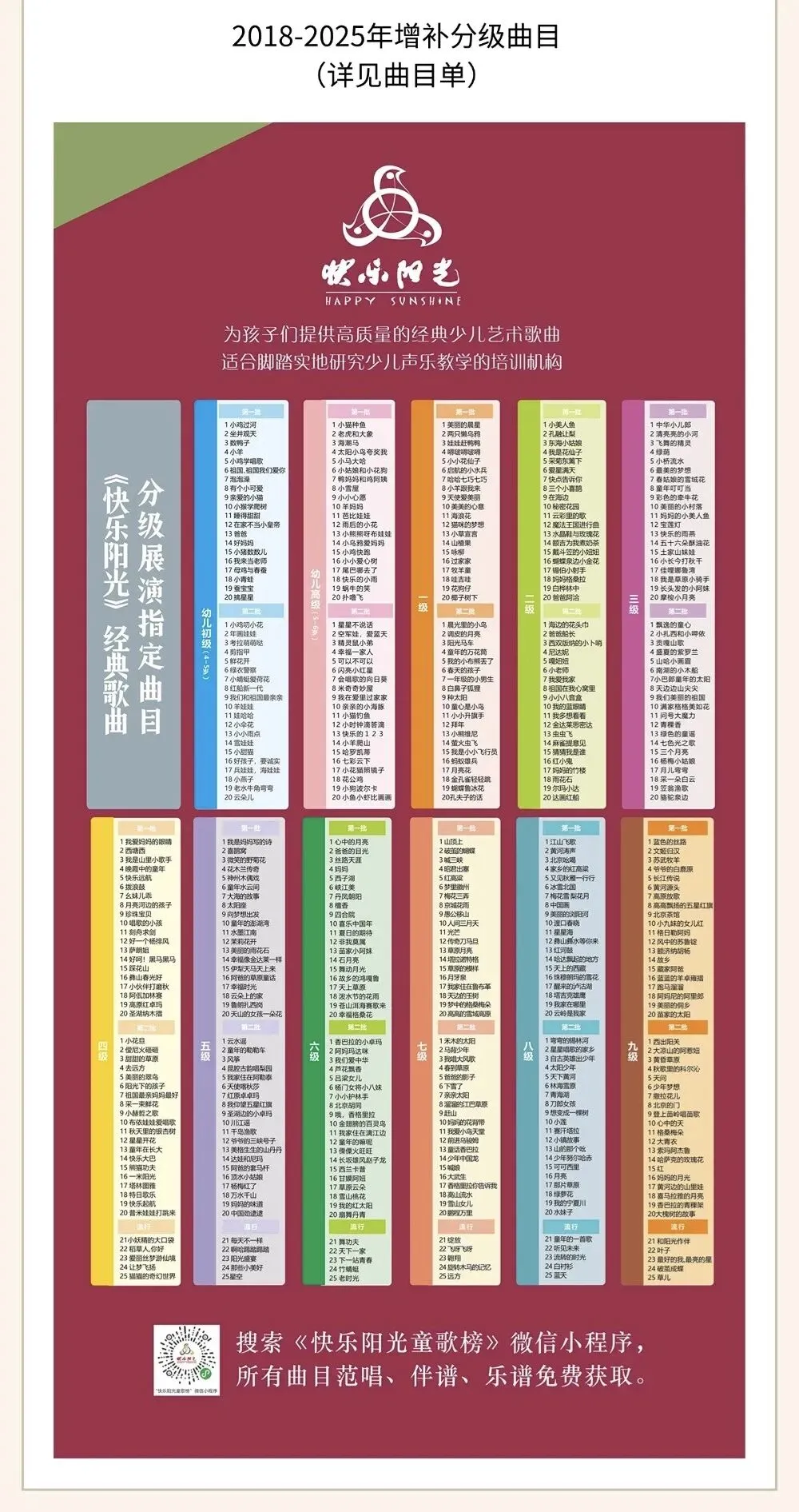 独唱各个组别11-15名选手入围分级展演国赛,国赛须演唱分级展演规定曲目,曲目如下所示: