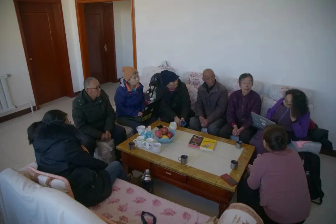 这一天我们还走访了养牛大户李志希,接下来就到了村支书郭秀梅家。来之前我们就看了关于郭支书的新闻报道,知道她的婆家是第一任党支书曹仓的后代,她自己从农村信用社退休,返乡研究养鸡致富,当上村支书后带动村民一起,用养鸡来克服草场面积对养牛羊数量的限制,打出“木凯淖尔土鸡”的品牌。听郭支书讲述了对未来村庄发展的设想,要走休闲旅游的绿色生态经济之路,吸引年轻人返乡带来新的思想,也要为村里老人的养老问题考虑。支书还分享了曹家的革命家风传承,她的公公曹旺做了20多年支书,在村里威望很高,不知不觉,受到他言传身教的影响,做人做事,先吃苦后享福,为人民服务。在郭支书身上,我看到了她作为革命接班人的自豪与责任感。木凯淖尔村有40多名党员,是镇里党员最多的村。郭支书说,这些党员在村里起到很大的带头作用。