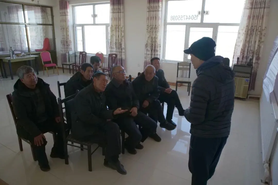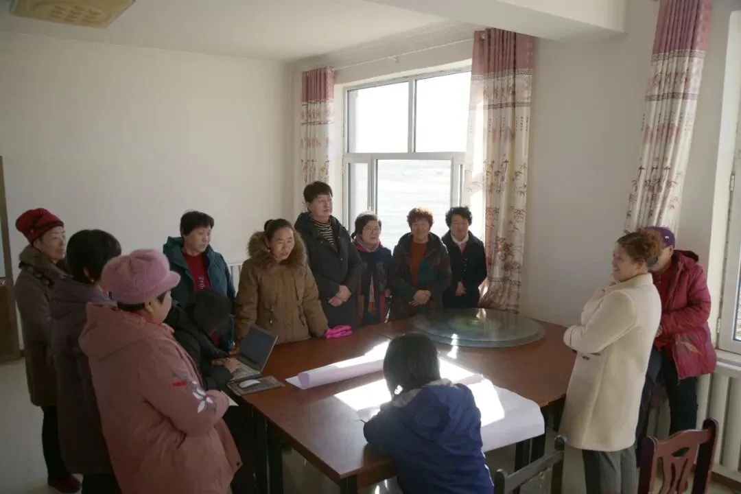 接下来,孙恒一句一句地耐心教大家唱。由于木凯淖尔村是这一次10个村庄和社区中最后完成的村歌,而全镇的村歌汇演就在两天后,时间特别紧张。大家都下定了决心,一定要尽快学会村歌。不识字的妇女们刚开始还有些胆怯,担心记不住歌词。但经过孙恒一句一句细心讲解,大家理解了歌词的涵义,写得也都是村里身边的事儿,也就显得没有那么困难了。