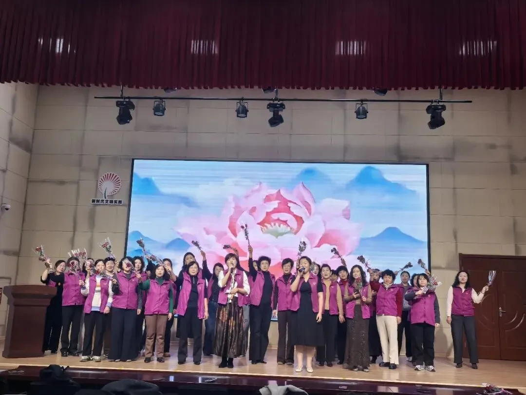 “花开中国,芬芳四海……” 全体人员身着巾帼志愿马甲、手持鲜艳玫瑰,共同唱响妇联主题曲《花开中国》。歌声悠扬、情意真挚,既有春风化雨的温柔,更有铿锵奋进的力量。大家用歌声致敬时代、礼赞芳华,展现出新时代妇联干部昂扬向上、奋发有为的精神风貌。