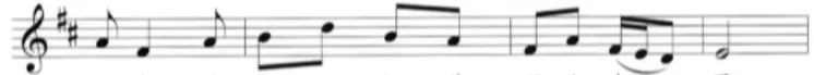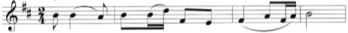 采用B羽调式五声调式,即:音阶由la[低音]-do-re-mi-sol-la)构成,最后主音为la,凸显民族韵味,调性稳定,契合故事的质朴感。