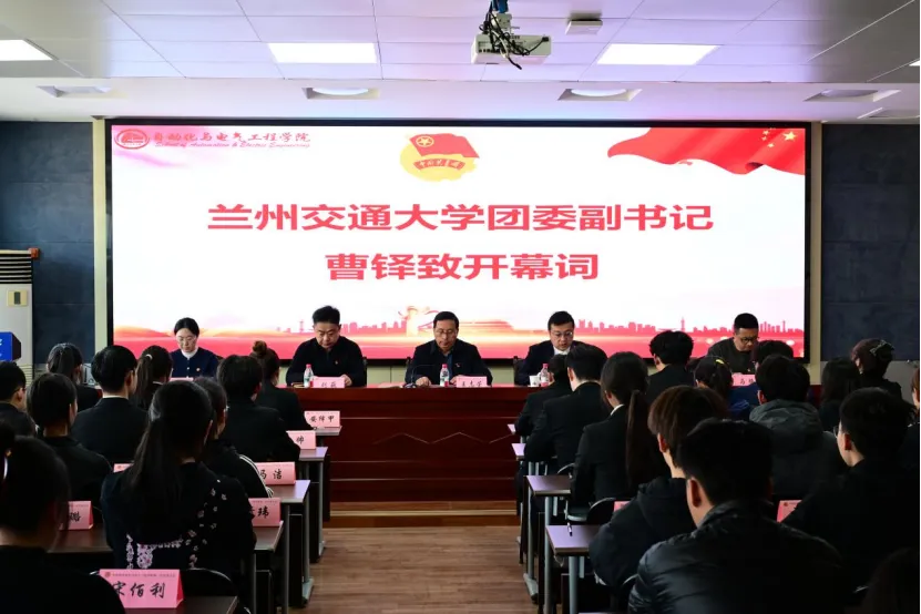 大会在庄严的《中华人民共和国国歌》声中正式拉开帷幕。校团委副书记曹铎向大会致开幕词。他充分肯定自动化学院团委在思想引领、组织建设、志愿服务等方面取得的扎实成效,对涌现出的全国铁道五四红旗团支部等先进典型、“两弹一星精神宣讲团”等特色品牌表示赞许。他希望学院共青团深刻把握新时代高校共青团的使命担当,立足自动化、电气工程专业特色,推动团的工作与人才培养深度融合,团结带领广大团员青年传承“严谨勤奋、友善诚朴、求实创新、厚积薄发”的院风精神,在服务同学成长、助力学校发展中奋楫争先、再谱新篇。