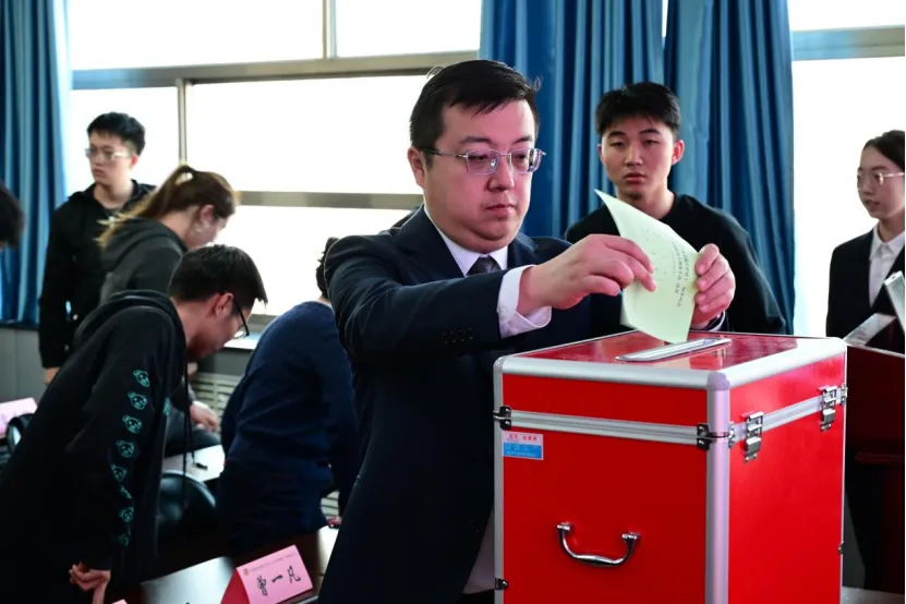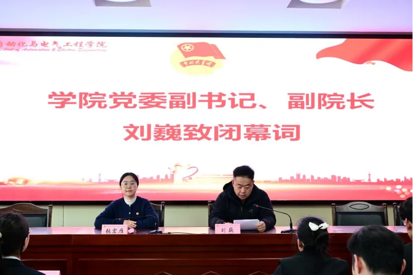 最后,学院党委副书记、副院长刘巍致闭幕词。他向新当选的委员表示祝贺,并对全院团员青年寄予殷切期望:要心怀“国之大者”,将青春理想锚定在交通强国的壮阔征程中,让老一辈专家学者和新时代自动化人的奋斗故事代代相传;要练就“硬核本领”,在勤学苦练中打磨专业利剑,让科创实践平台成为青春起飞的跑道;要扎根“西北沃土”,传承好“扎根西北、服务铁路”的精神底色,把“三下乡”“返家乡”的足迹印在祖国最需要的地方,用艰苦奋斗书写无愧于时代的青春答卷。