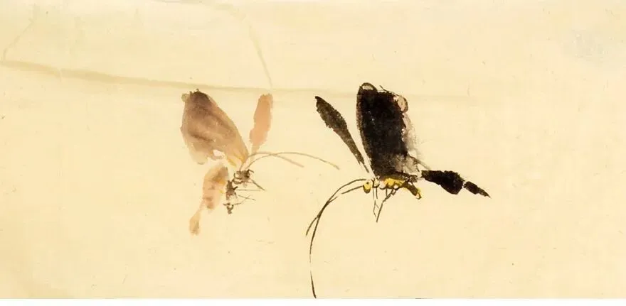 这时,正在天空自由自在飞行的小鸟们,不知不觉进入捕鸟人的网中,左冲右突,怎么也冲不出去,不时发出"啾,啾......"的哀婉啼叫。