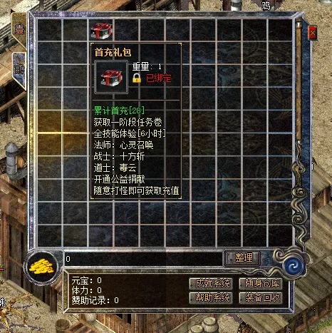 那当然是有的,大家上线看到背包里的首冲礼包没有,首冲礼包打开不仅有三职业的高级技能和一些道具,最重要的是一个一大陆任务完成卷轴,只要你双击一大陆的所有任务就自动完成了,点开任务界面每个任务手动接受和提交一次,立马就完成了一大陆的所有任务,然后打开背包点开成就系统,这样所有功能就可以自动解锁了。