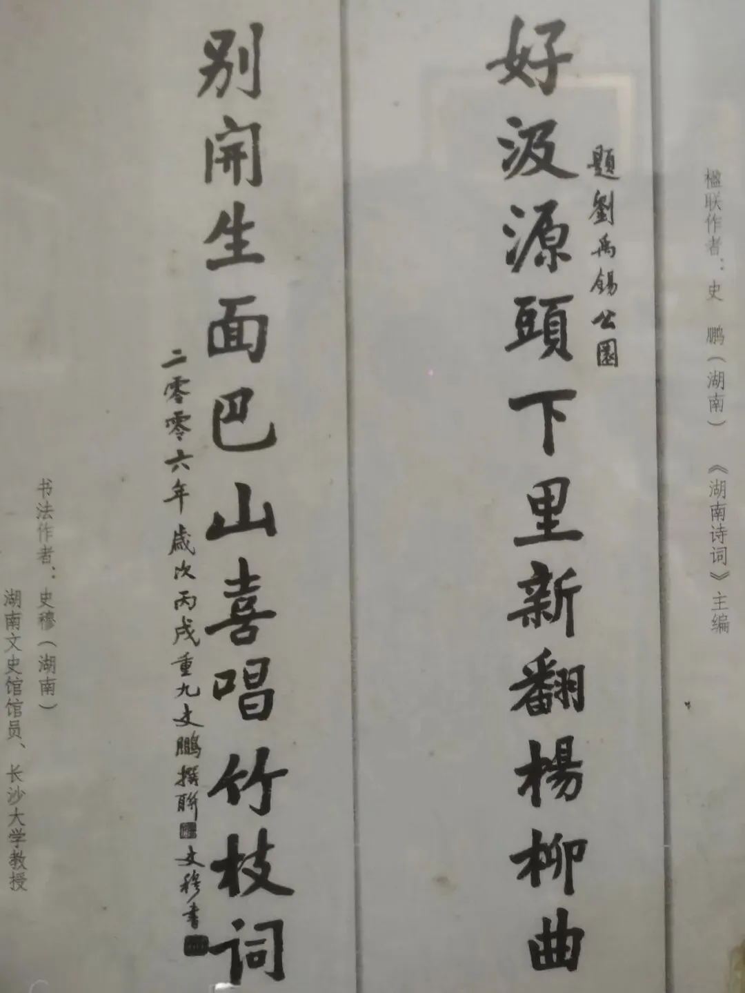 丙戌重九的霜风,吹过千年的巴山楚水,将杨柳的新声与竹枝的旧韵,都凝在了这一纸墨香里。这联墨是史家兄弟指尖的温度,也是刘禹锡笔下的月光——它不曾随岁月褪色,反而在每一次展读时,都能听见巴山楚水间的清唱,看见那位“诗豪”在逆境中扬起的眉梢,与湖湘文人代代相传的风骨。