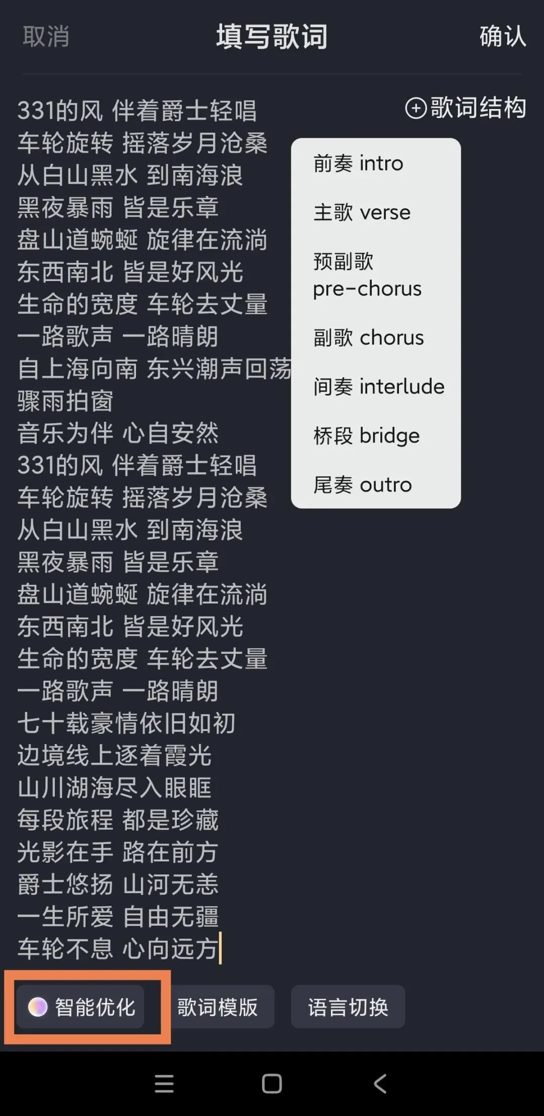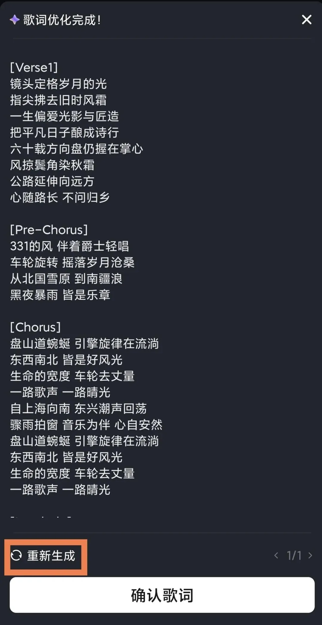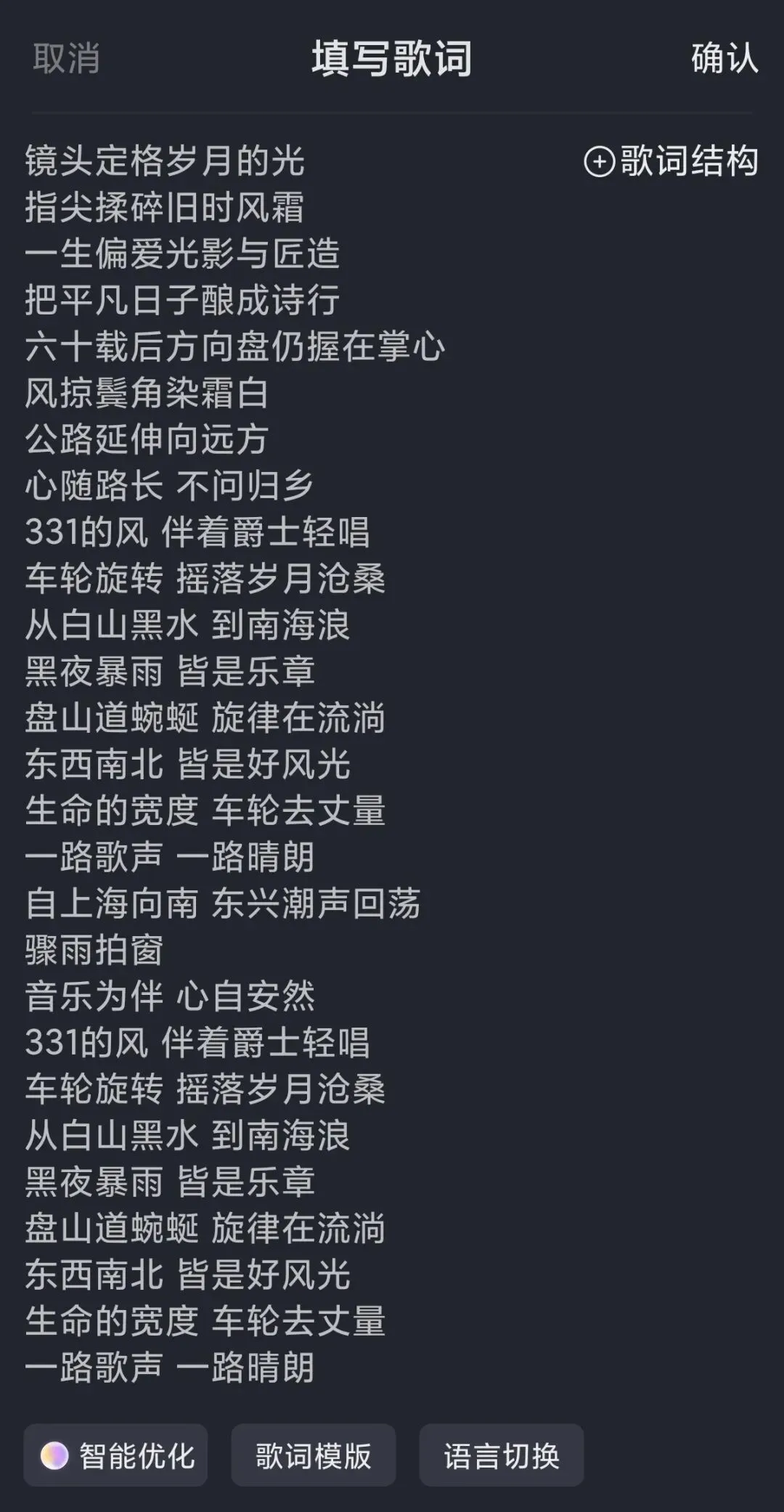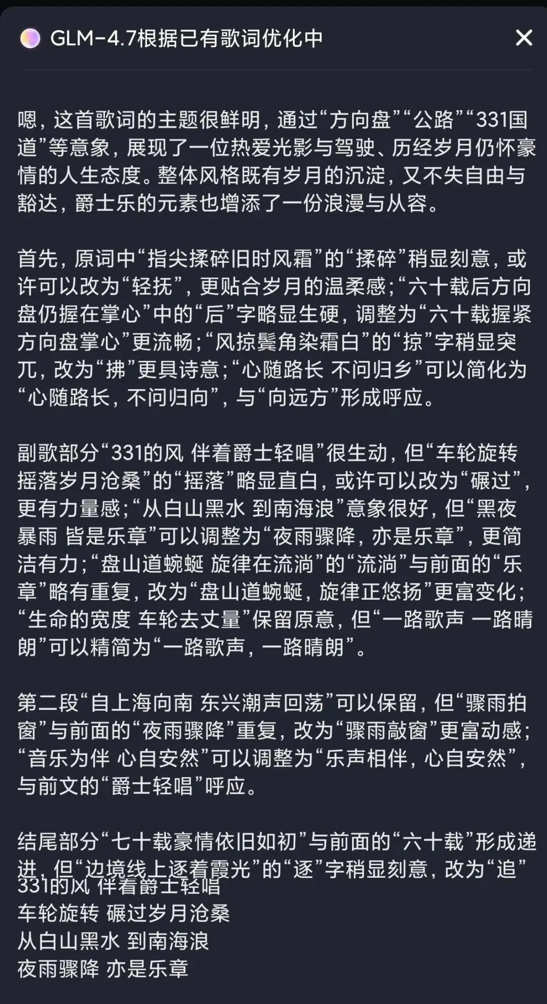 系统会按照分析给出评价和改进版本,并生成歌词结构。