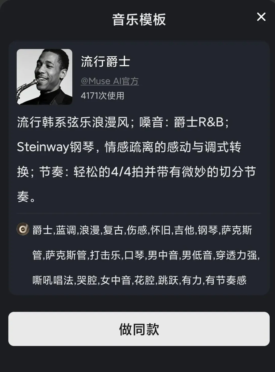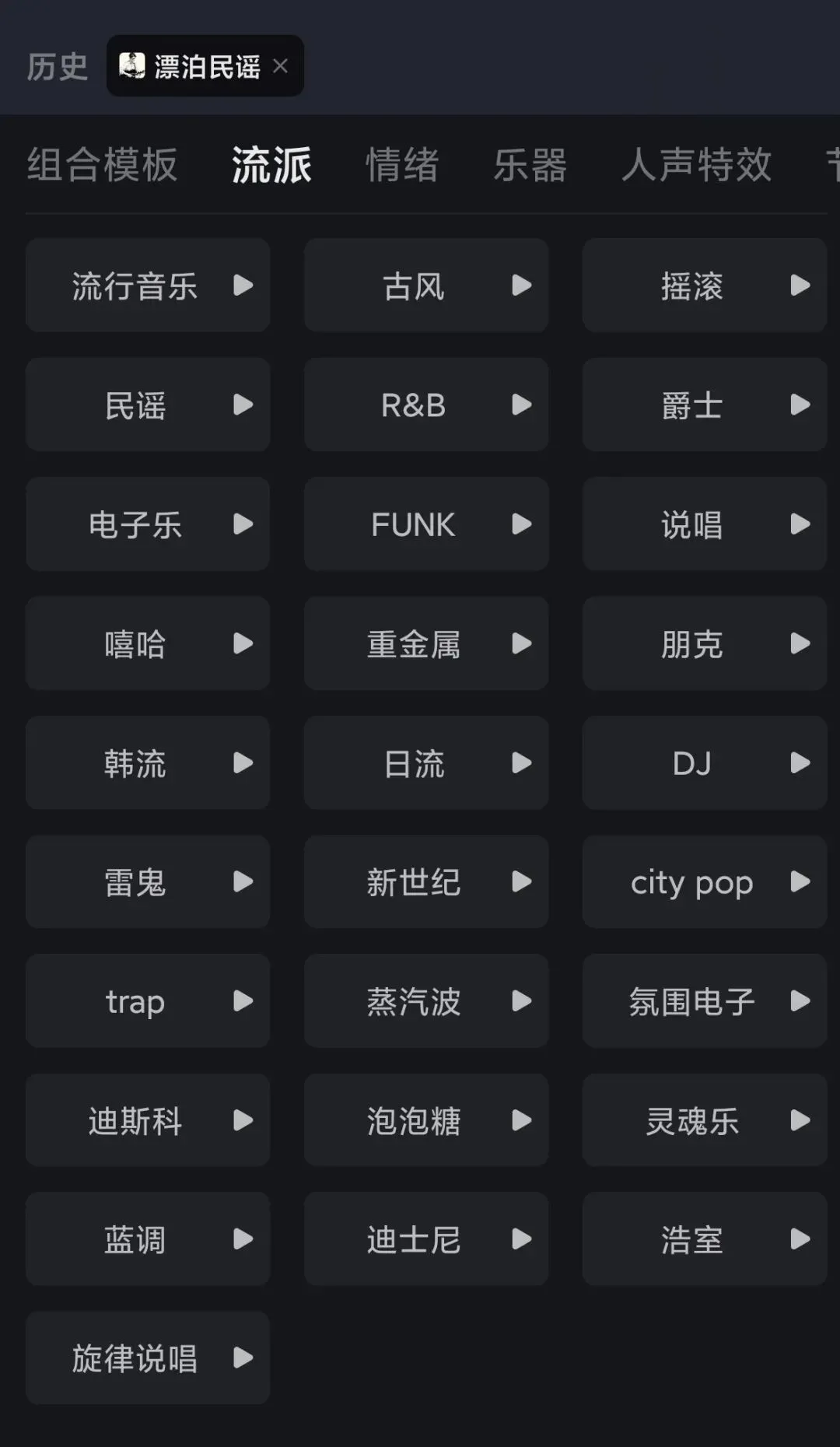 - 风格:流行/摇滚/电子/民谣/爵士/古风