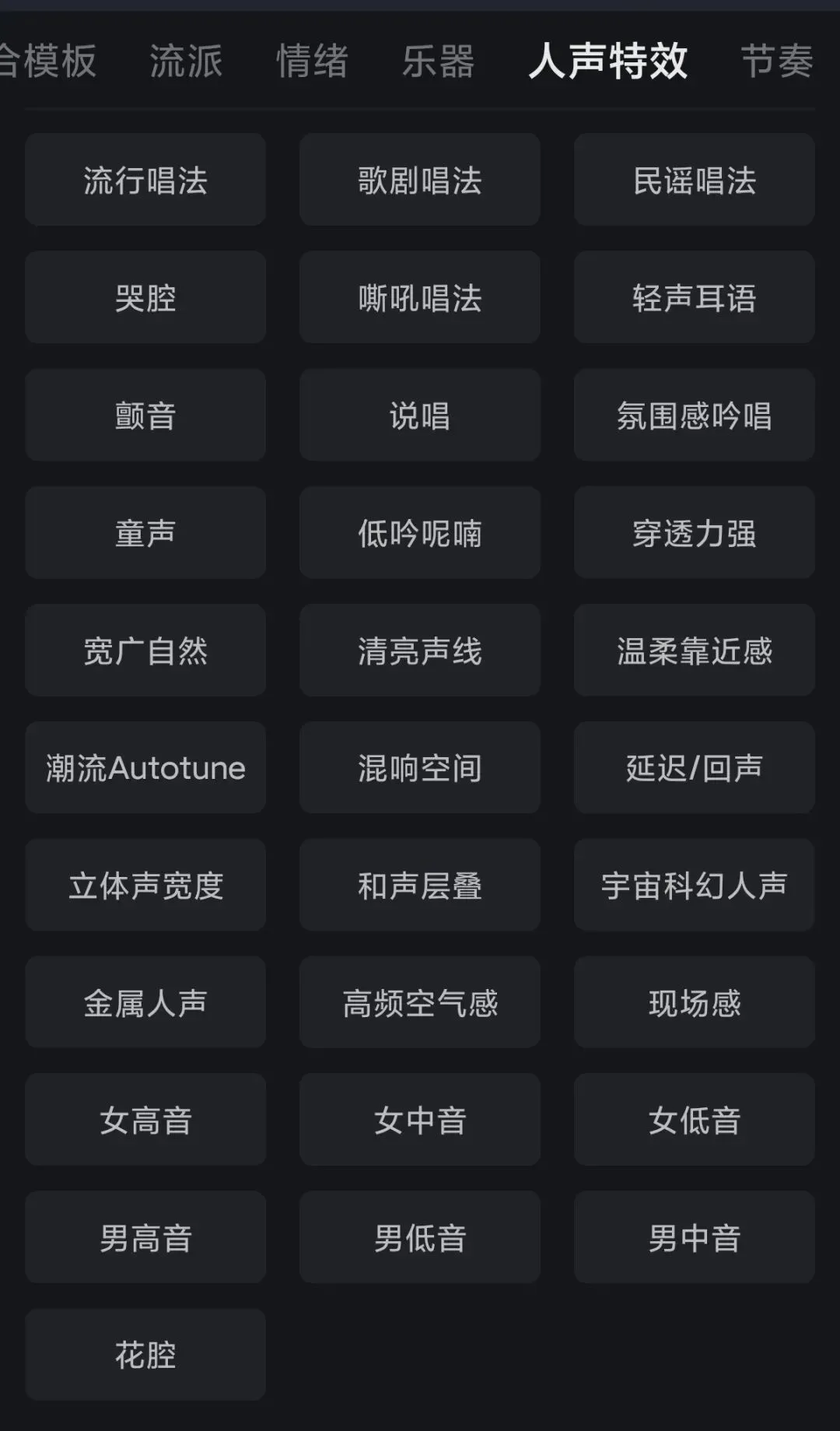 - 乐器:钢琴/吉他/鼓/贝斯/弦乐/合成器
