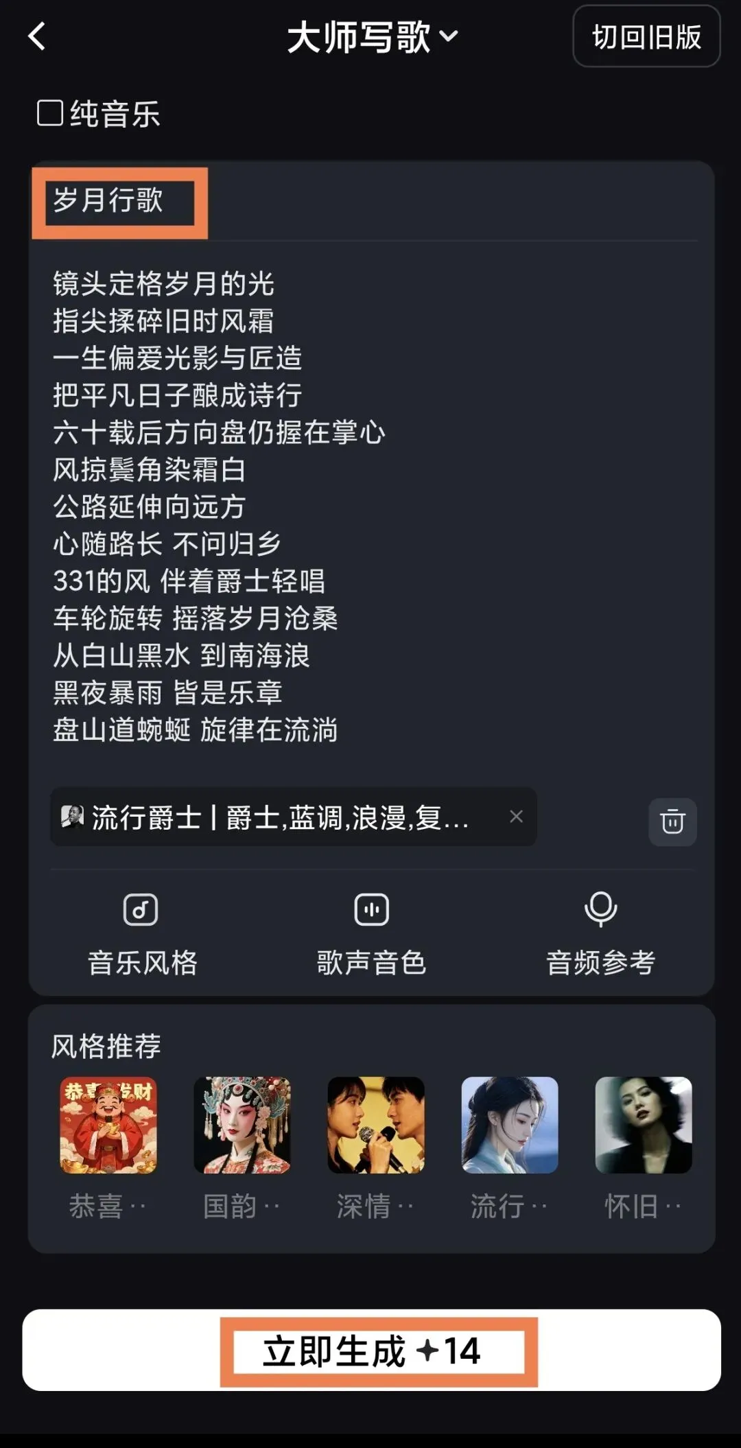 - 情景模式:按情绪/场景创作(如深夜、旅行、励志)