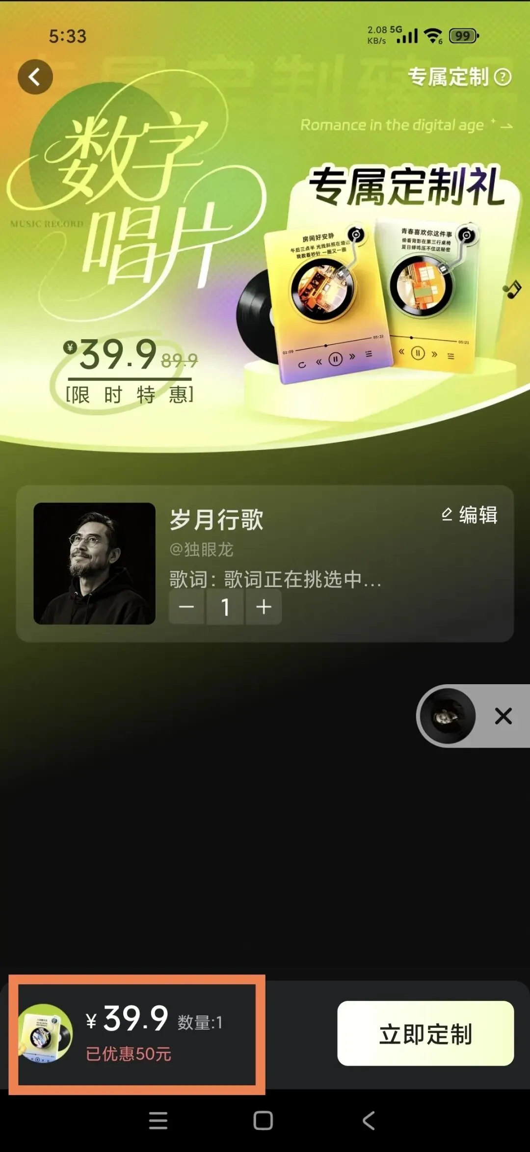 满意的作品可以注册版权,还可以定制唱片。
