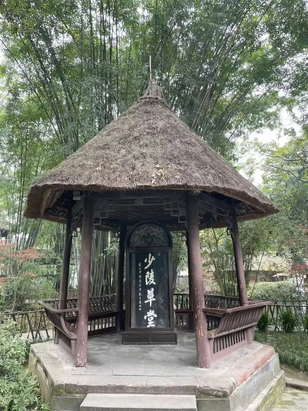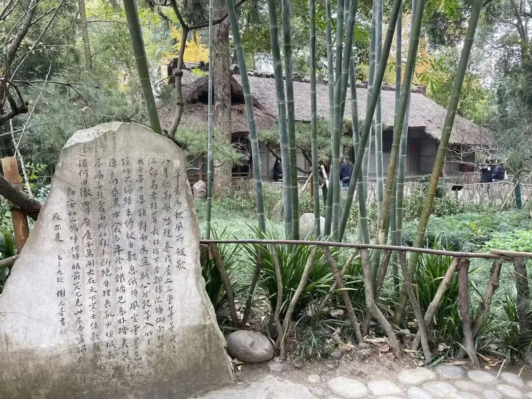 作者按,去岁末,至成都草堂寻访老杜,浣花溪畔,宁静安适,杜甫再没了奔波之苦,在此安枕。茅屋安稳,想是不会被秋风卷走屋上茅,再受屋漏夜雨之苦。草堂里种着两棵千年的银杏,在这里守候老杜。