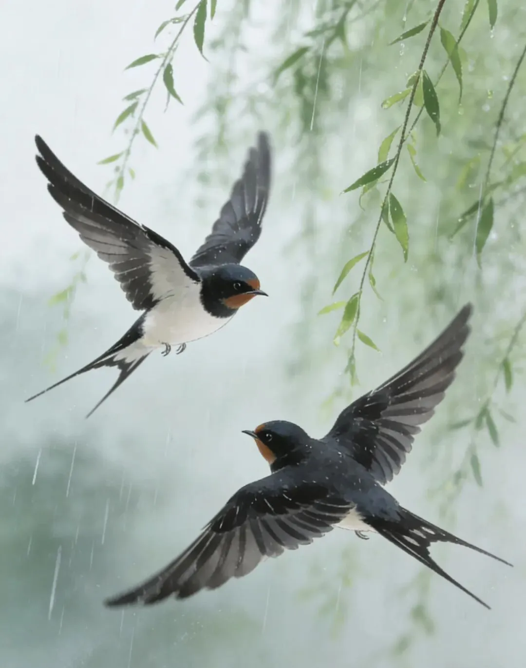 双燕剪开烟雨幕,一犁翻起碧云浪。
