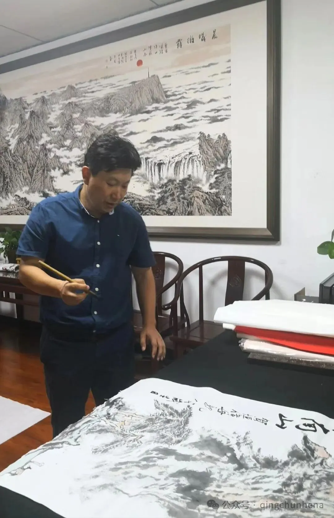 此外,单纯刚在书画艺术领域成就卓然,其书法作品风格多样,无论是古朴厚重的篆书、端庄秀丽的隶书、流畅自然的行书还是刚劲有力的草书,都能在他笔下展现出独特的魅力。他注重笔法的运用,强调书画同源,通过以书入画的书法特质之美,增强了绘画的表现性与自由性,参加主创的重大文化项目、被誉为北大版“清明上河图”的北京大学120周年校庆作品《北大筑梦图》长卷,由著名经济学家厉以宁题词,北大常务副校长吴志攀作跋,著名艺术家单纯刚手绘,以其作品的鲜活、个性、优雅,成为中国当代文人画传统的空谷绝响。
