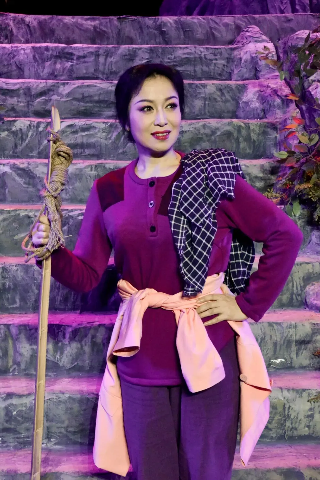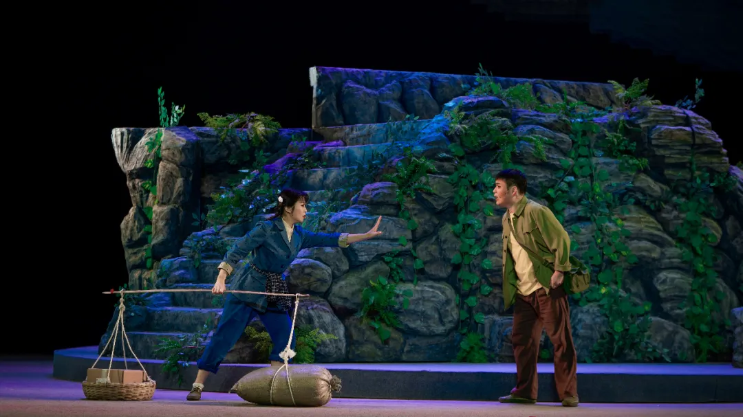 前年,偶尔听丽君姐提起过准备移植这个戏。恰巧这部剧的原创,华雯老师的沪剧我看过,对这部戏记忆尤深。华雯老师的表演被专家评价为“极自然、极真诚、极本色”。她把自己内心真实的情感活动和沪剧接近生活的唱念做技巧融合一处,逐渐进入戏曲表演的艺术境界,展现了独特的风采。所以当我知道要移植这部戏时,我是很佩服许丽君敢于挑战的勇气同时也担心她是否能胜任这个角色。说实话这个戏是角儿的艺术,看的是角儿,唱腔之多,戏剧张力之大,表演功力之深,是非常考验戏曲演员表演功力的一部大作品。第一次彩排,丽君姐请我去看戏。作为她的朋友,我是带着担忧去看的。坐在台下我的心随着她的演出起伏,从婆婆离家的愤恨到美英突破困境选择去挑山,从子强与美英隐晦爱意的相互扶持的欣慰到子女不理解的心痛,直至最后一大板唱腔音落,我才为她长舒一口气。整场戏结束让我很惊喜,她的表演爆发力让我对她的艺术演绎有了新的认识。许丽君第一次排演这么重的戏就可以完整呈现给观众,这本身就是很大的挑战与进步。但是由于排练时间仓促,在人物的理解、表演以及唱腔方面是需要狠狠下功夫提高。之后的这一年,我见证了许丽君作为演员的成长,也见证了她一点一滴塑造成型的美英。