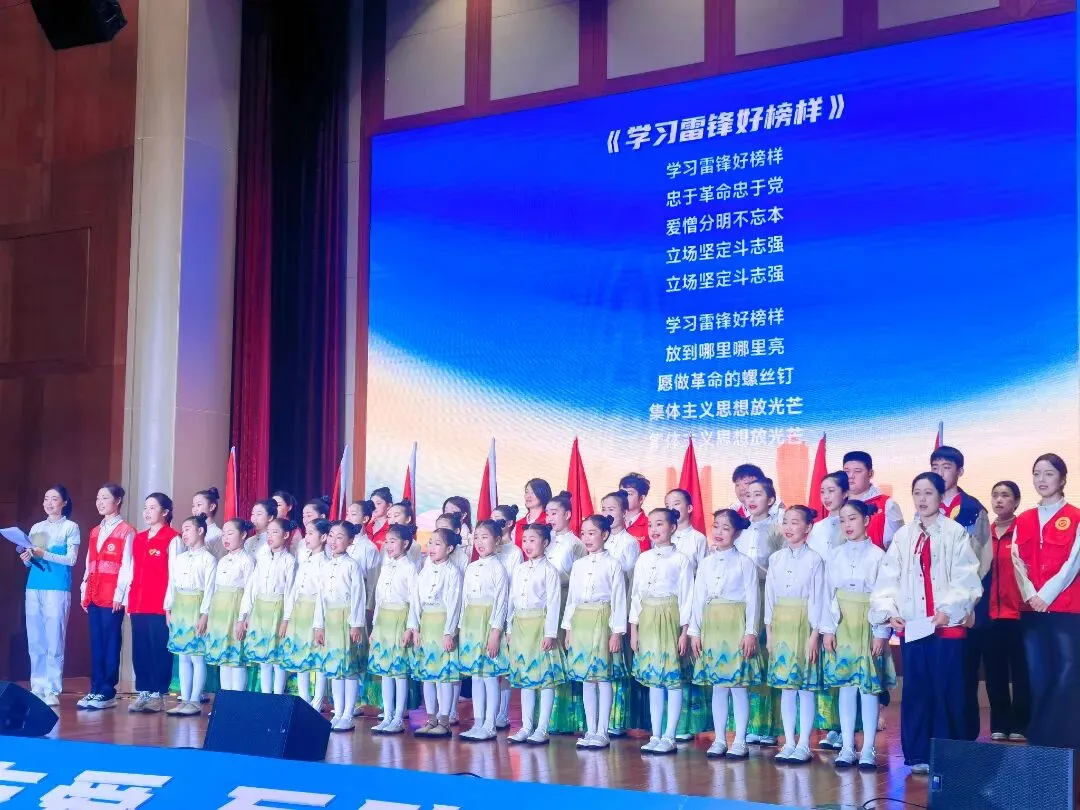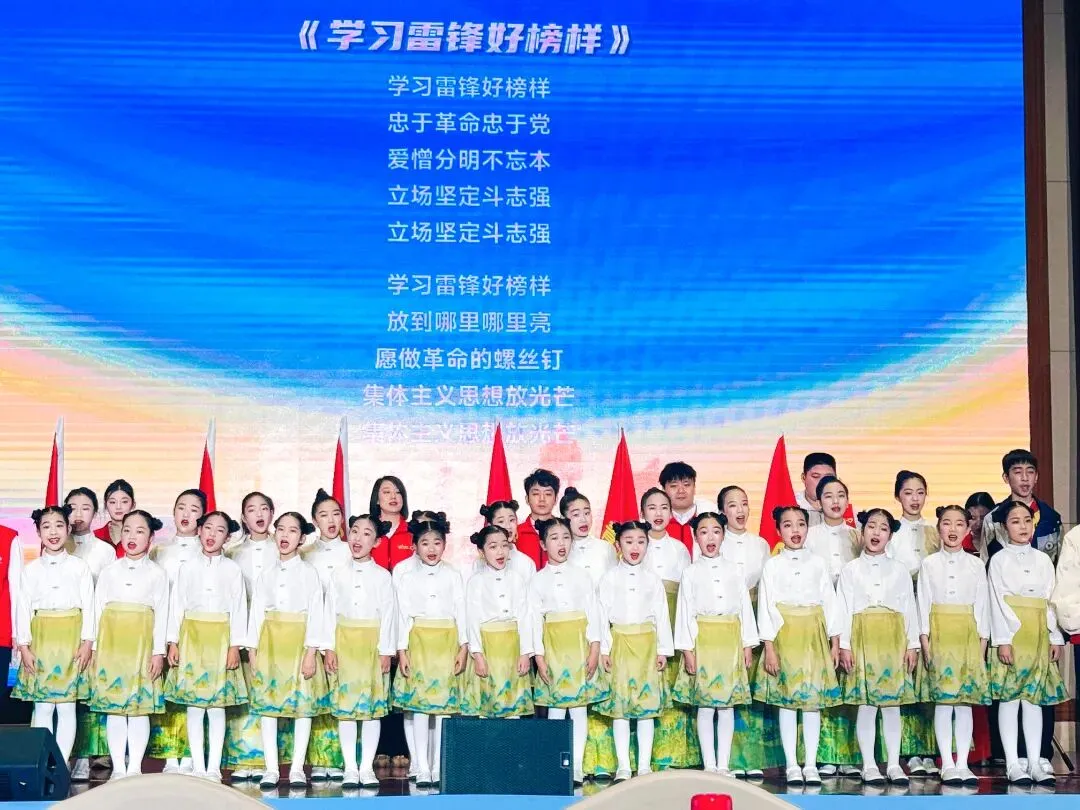 活动尾声,孩子们再次登台,和在场的志愿者代表们共同唱响《学习雷锋好榜样》。稚嫩而坚定的歌声铿锵有力,带动全场齐声合唱,将现场气氛推向高潮,让雷锋精神在歌声中传递、在共鸣中传承。