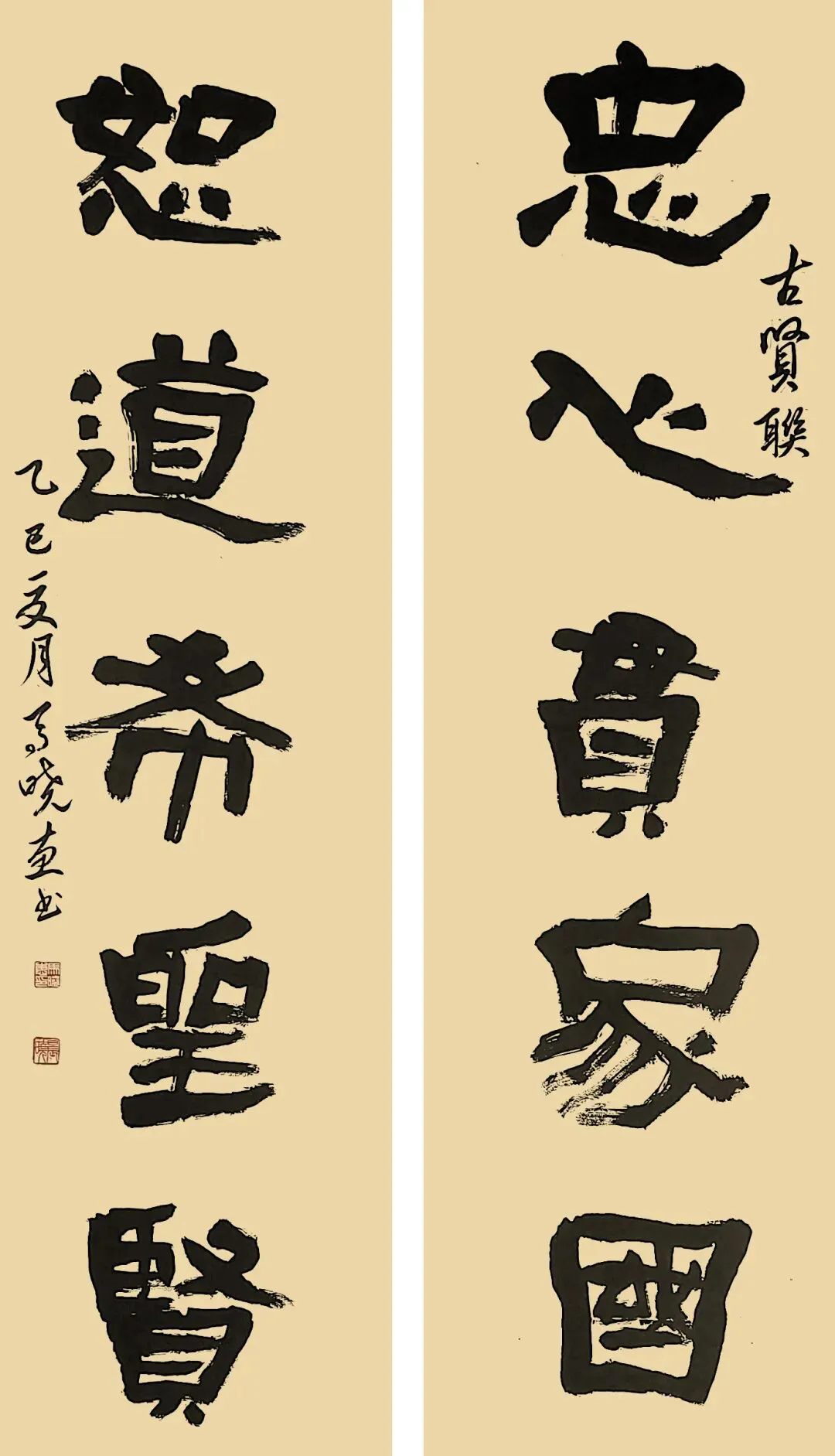 马晓惠 古贤联《忠心贯家国 恕道希圣贤》138cm×34cm×2