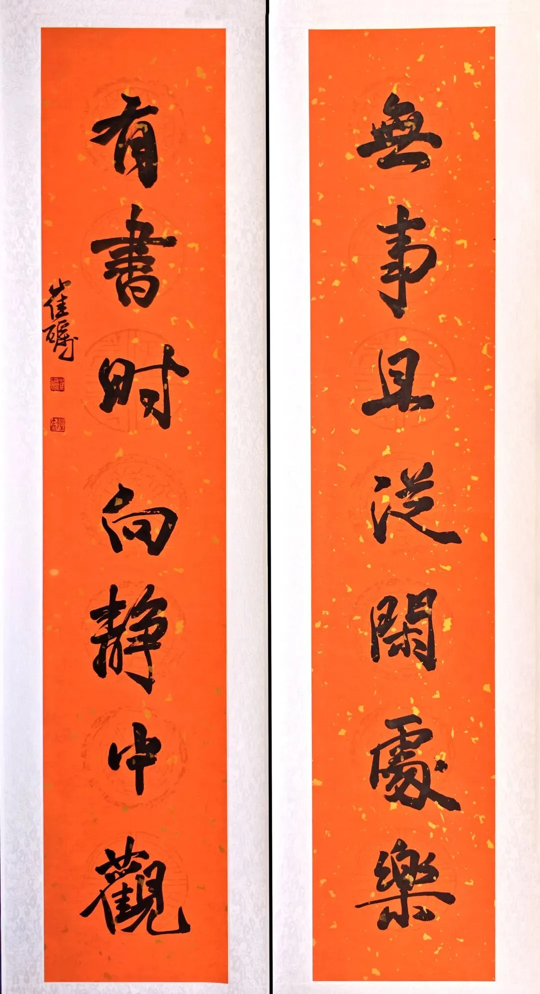 崔砺《无事且从闲处乐 有书时向静中观》138cm×34cm