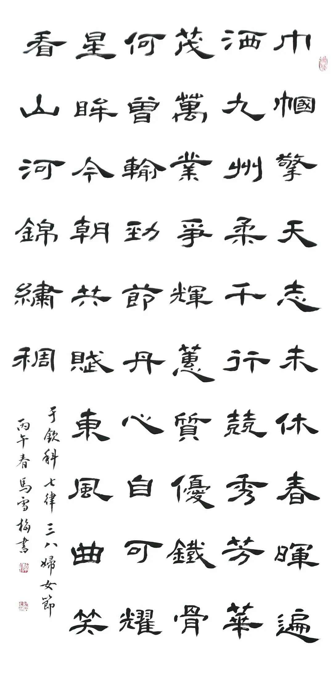 马雪梅 于钦科七律《“三˙八”妇女节》138cm×69cm