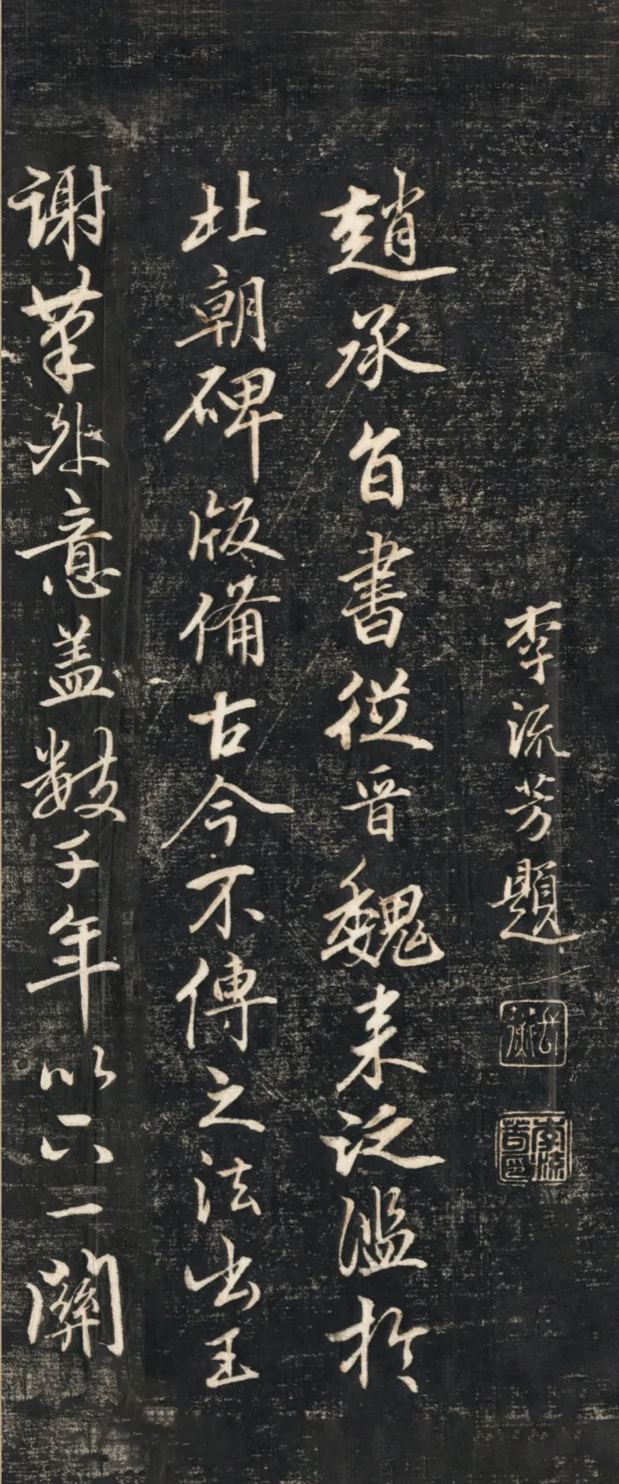 【15】李流芳题。{弟奕禧题}赵承旨书从晋魏来,泛滥于北朝碑版,备古今不传之法,出王谢笔外意,盖数千年以下一关