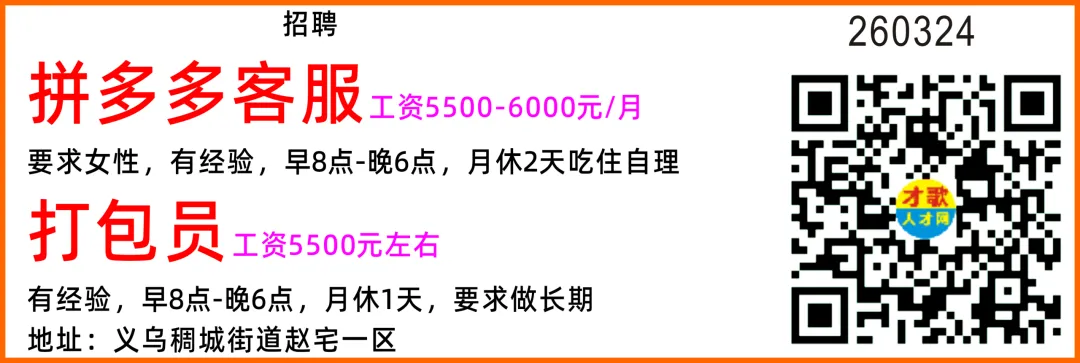 招 聘拼多多运营 底薪+提成,具体面议配货打包 男女不限,18-40岁,工资5000-7000元司机 工资面议 采购 工资面议售后客服 工资面议以上岗位要求长期稳定(短期工、暑假工请勿扰)地址: 义乌青口东苑路218号