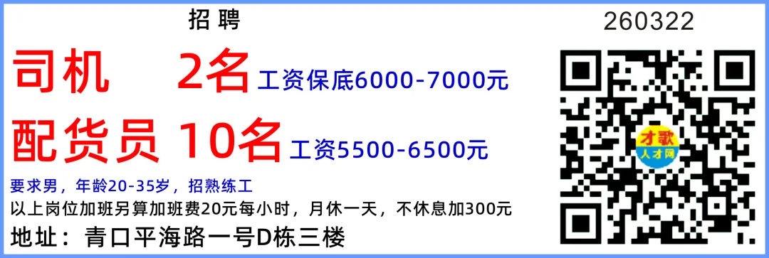 青口急招:装卸工,月底薪6000-7000!03-08