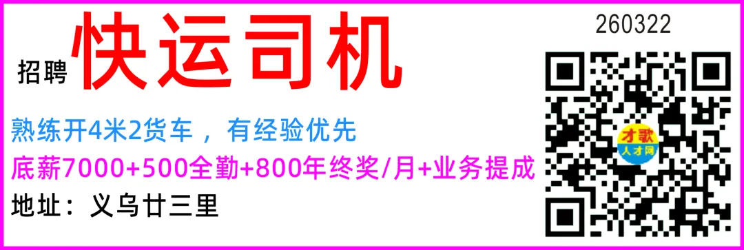 招 聘司机 1名工资面议地址:义乌市苏溪镇镇前街999号