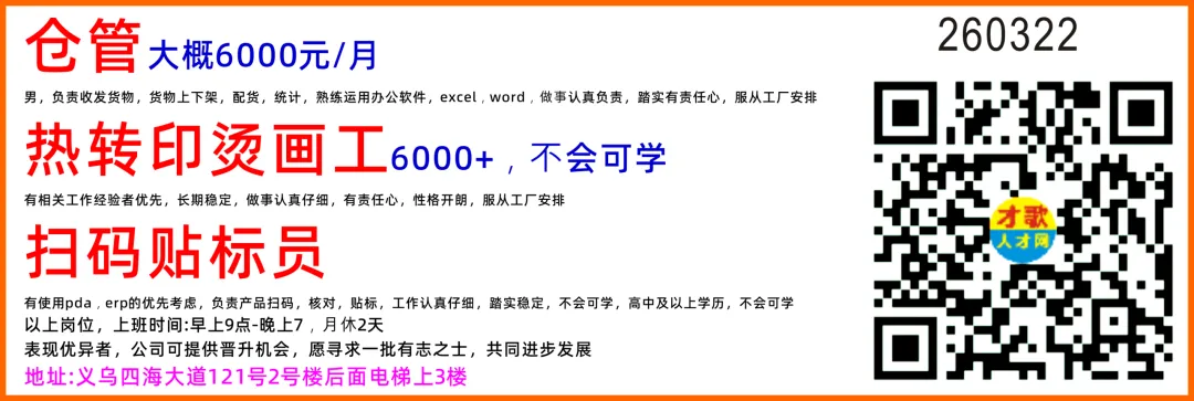 义乌稠城招聘:仓库男工.短视频制03-08