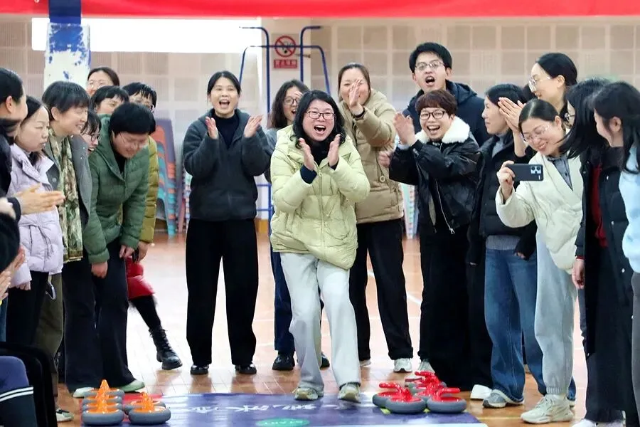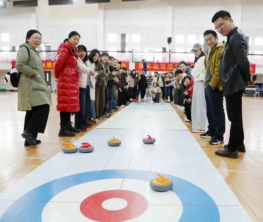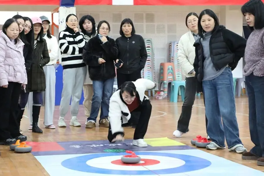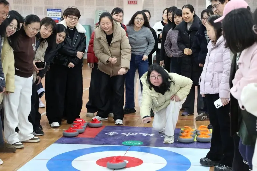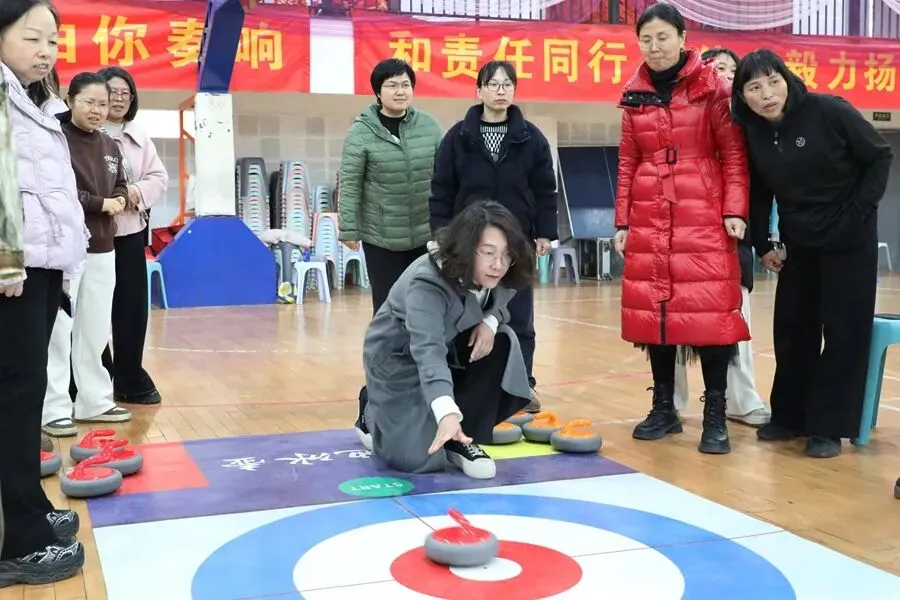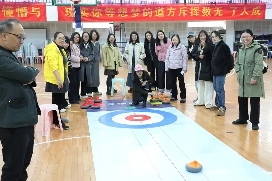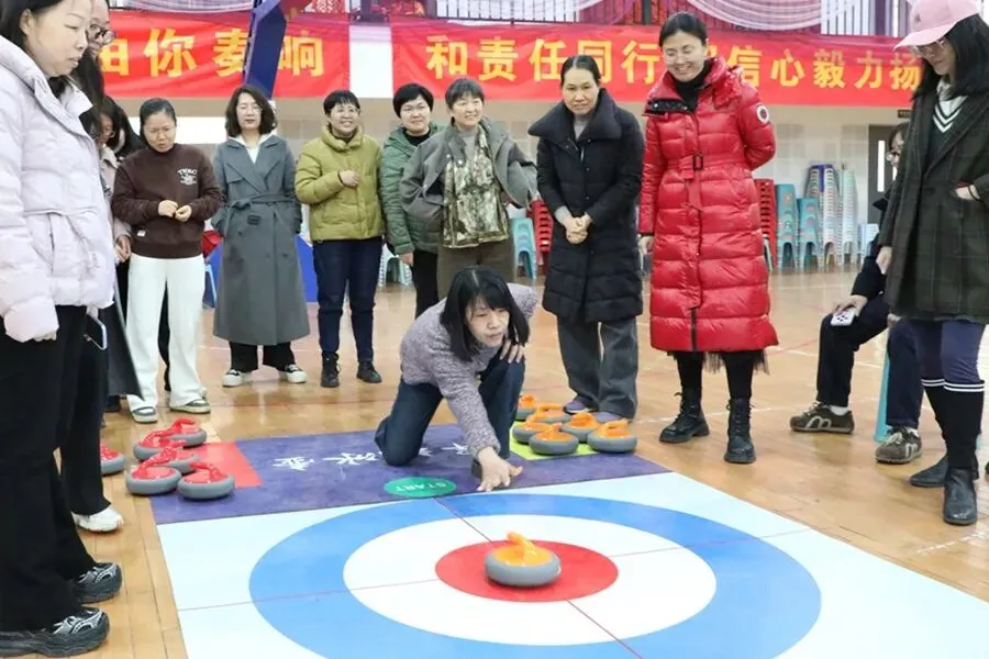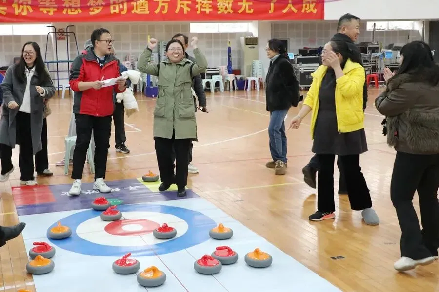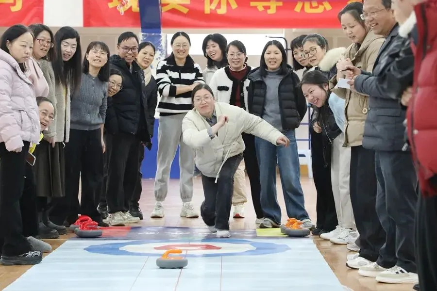 趣味运动,活力绽放。旱地冰壶比赛现场气氛热烈、欢声笑语不断。大家精神饱满、默契配合,瞄准、发力、投壶,每一个动作认真专注。赛场上既有紧张有趣的竞技比拼,又有互帮互助的团队温情,充分展现了女教职工昂扬向上、团结奋进的精神面貌。