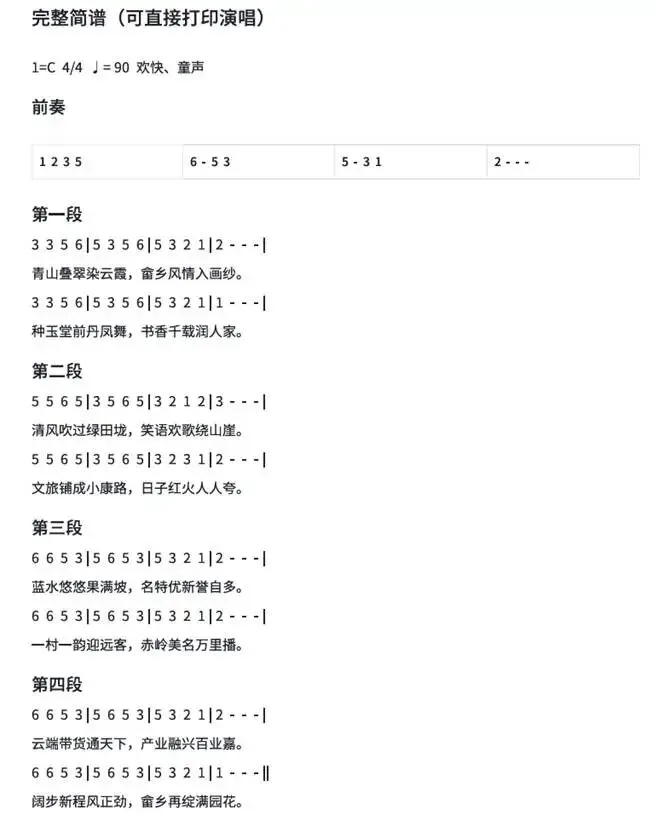 《赤岭畲乡谣》紧扣《雨夜花》曲调,又学《四季歌》的明快意境,把畲乡风光、文旅、产业、小康、新时代全都写进去了,朗朗上口,适合儿童欢快传唱。