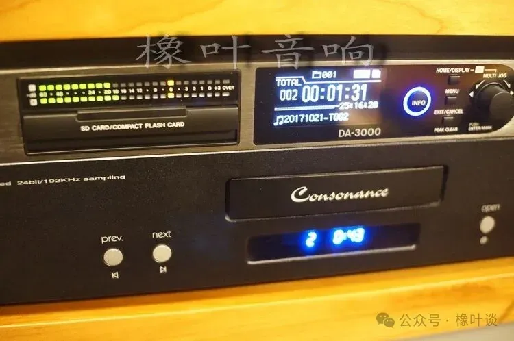 因CD转盘容易受机械振动等因素干扰(Jitter失真不恒定),曲目先由CD转盘播放,TASCAM DA3000母带录音机记录标准16bit/44.1kHz WAV格式的数字文件;这样得到的数字文件比电脑光驱抓轨效果好很多。