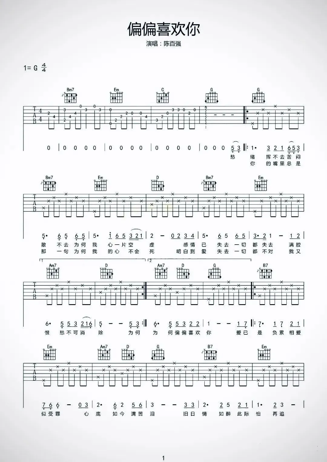 指尖在六根弦上反复摩挲,G调的旋律里,是陈百强唱不尽的痴缠。从“偏偏痴心想见你”的执念,到“为何偏偏喜欢你”的自问,每一个和弦都裹着旧时光里的遗憾。扫弦时的轻重,像极了爱而不得的心跳,那些反复的旋律,原来都是藏在吉他里的心事。