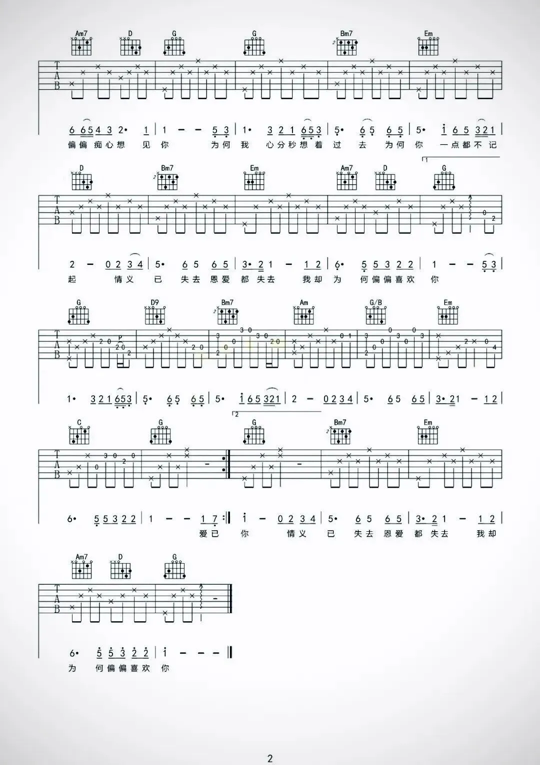 - Bm7和弦需要用食指横按2品,注意手指力度均匀,避免闷音。