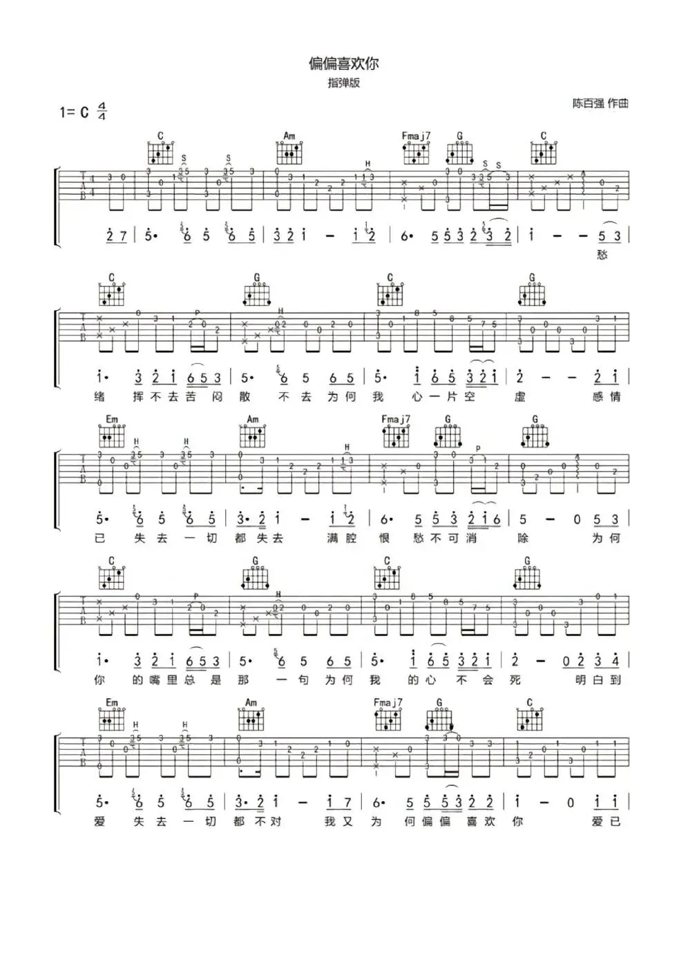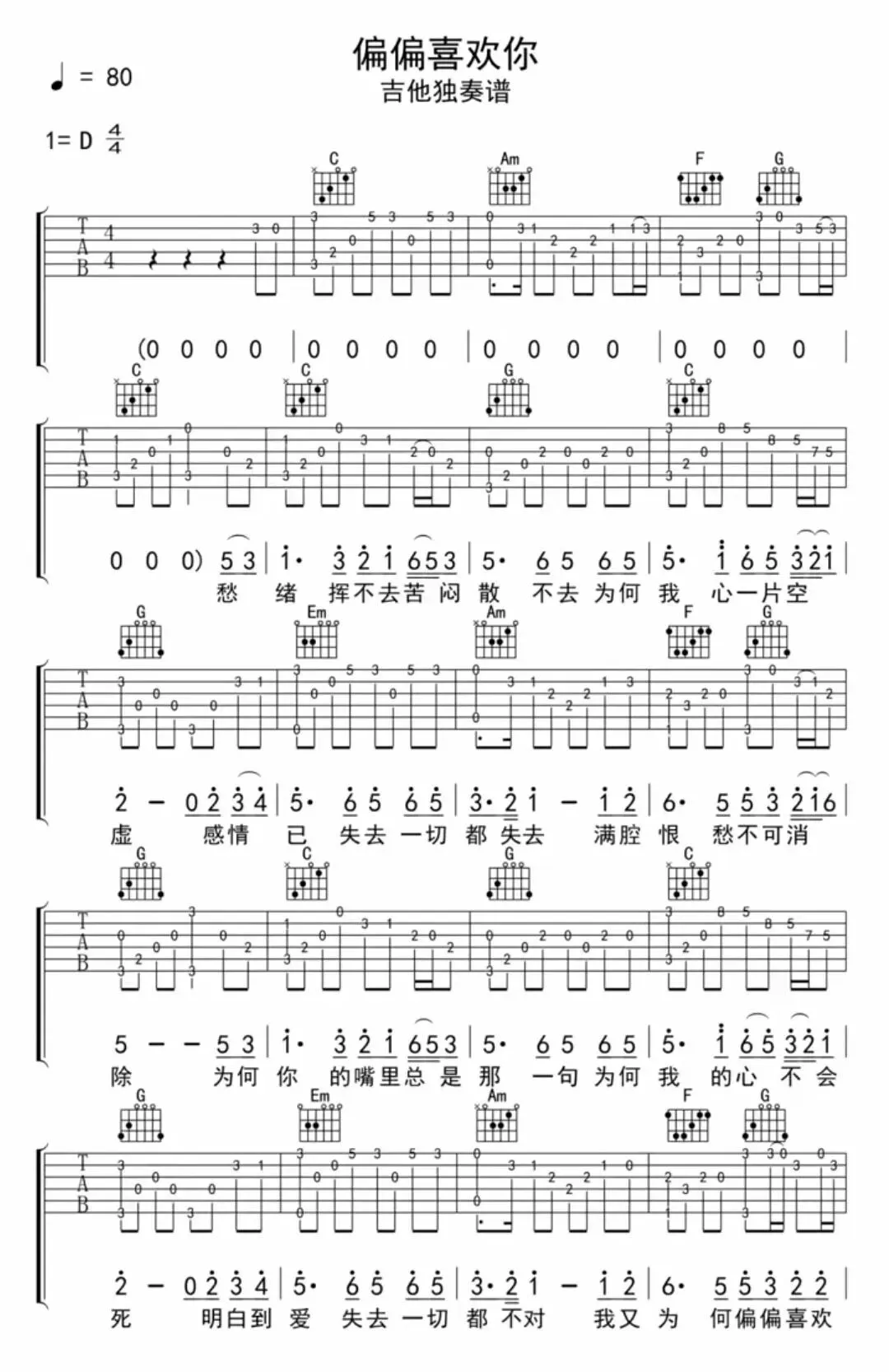 《偏偏喜欢你》吉他弹唱&指弹分享