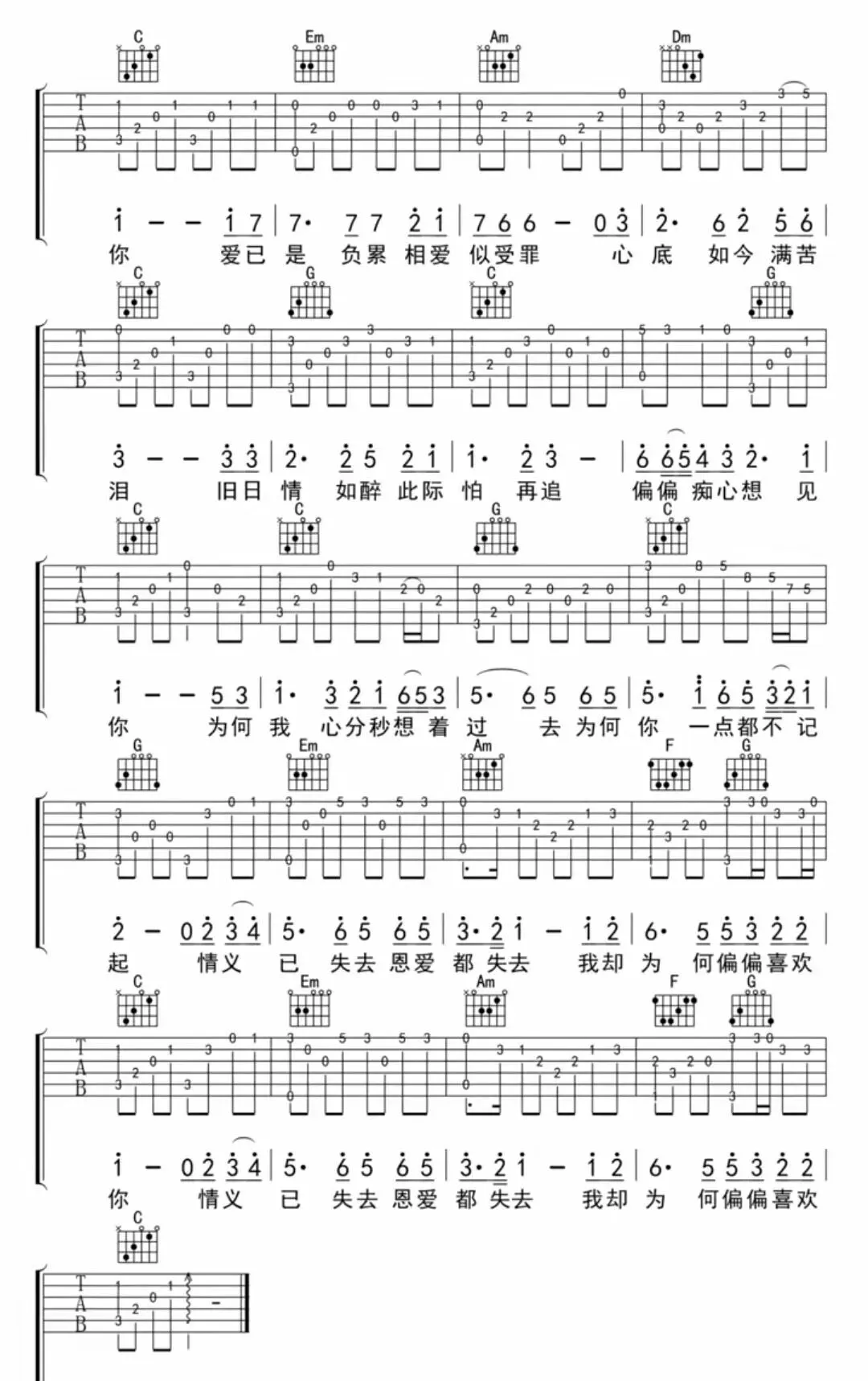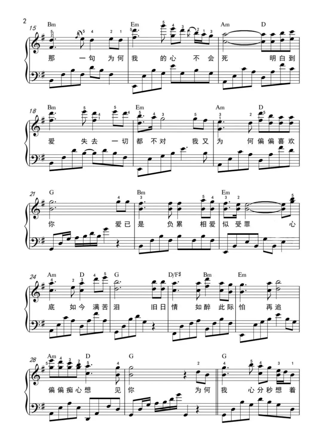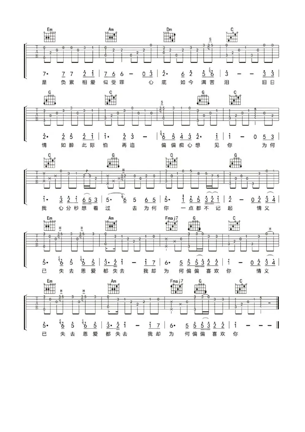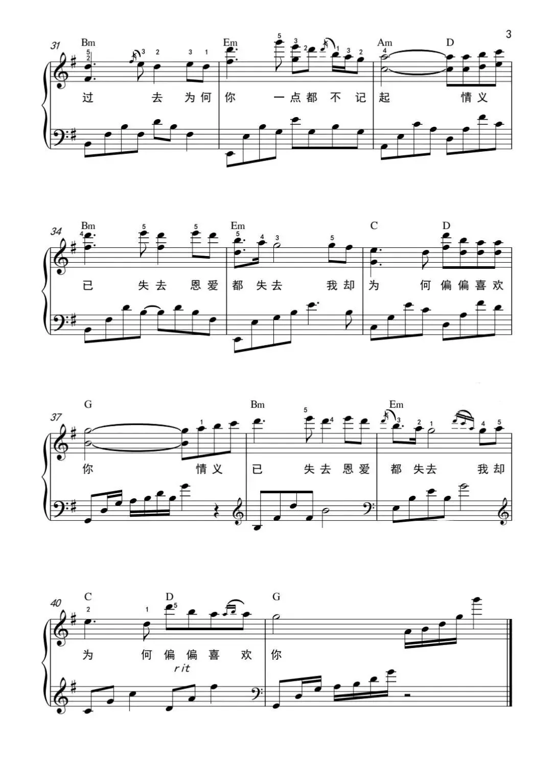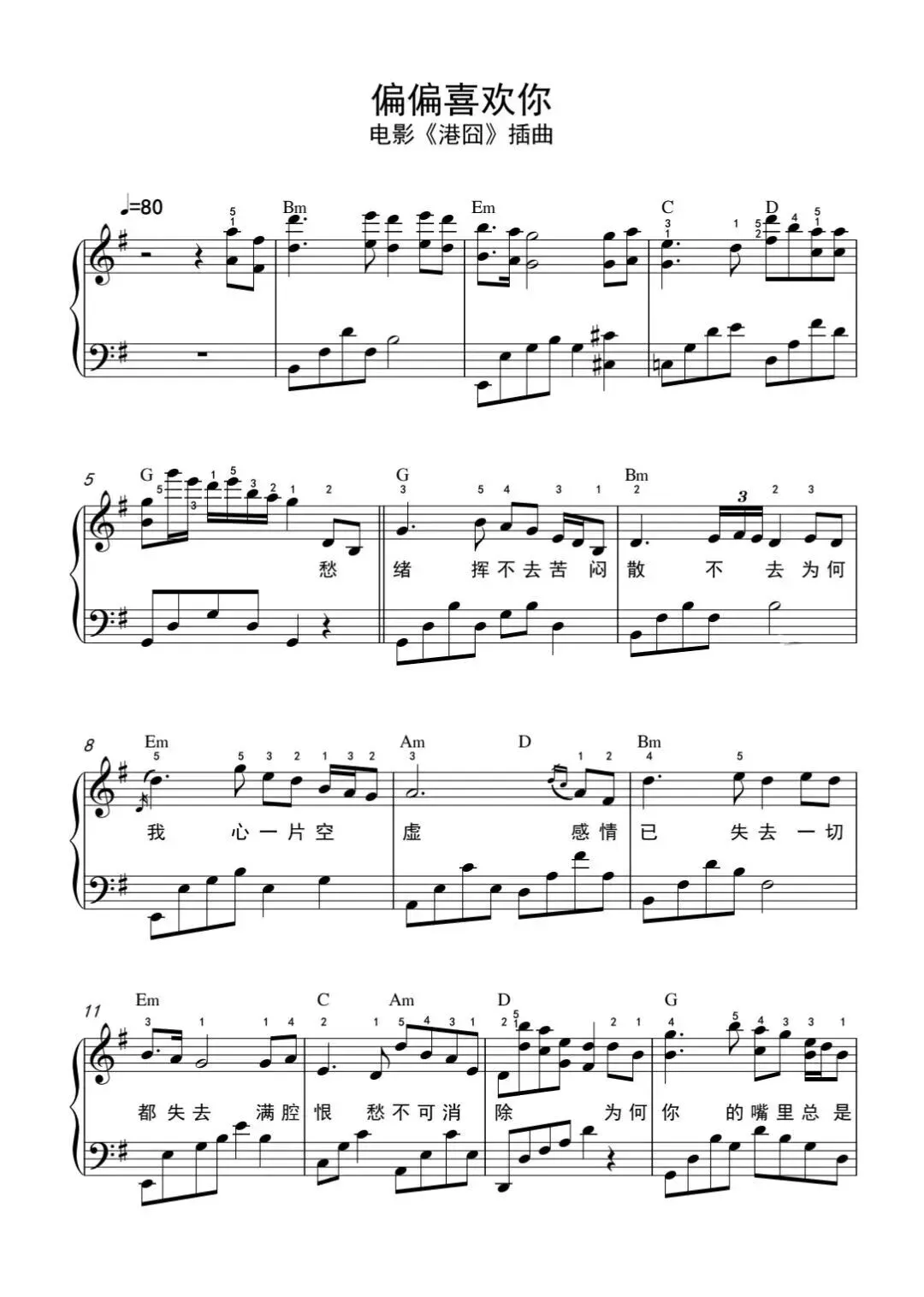 《偏偏喜欢你》五线谱分享