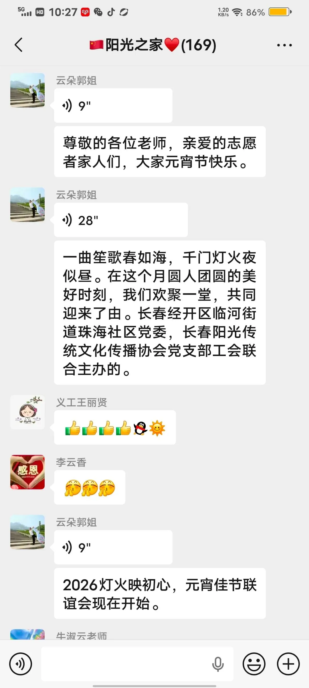 灯火映初心,云端共团圆。为弘扬中华优秀传统文化,营造欢乐祥和的节日氛围,长春经开区临河街道珠海社区党委、长春阳光传统文化传播协会党支部于正月十四日,共同举办了“2026灯火映初心,元宵佳节联谊会”。志愿者及家属欢聚“云端”,以歌舞、诗朗诵、猜谜语、歌曲、独白、快板、三句半、平剧等表现形式欢度元宵佳节,让传统节日大放异彩。