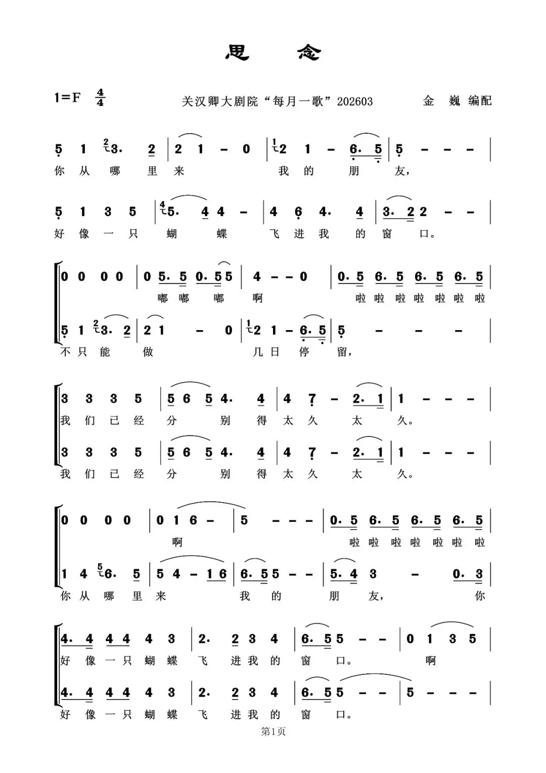 《思念》由著名词作家乔羽作词、作曲家谷建芬谱曲。歌词创作灵感来源于乔羽个人经历,通过“蝴蝶”意象隐喻聚散无常的情感。