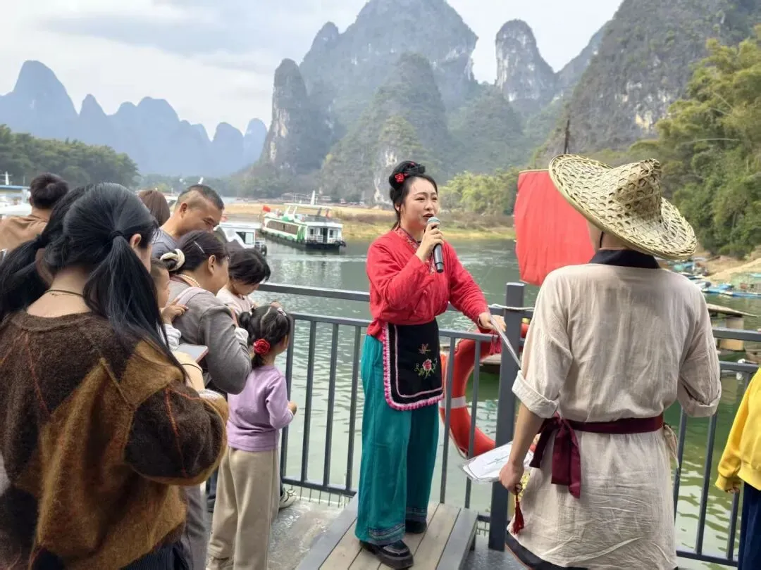 表演全年免费开放,无需额外购票,只要你走进兴坪码头渔村游候船楼,就能邂逅这场文化盛宴。演出时长会根据NPC与观众的互动情况灵活延长,每一场都有不一样的惊喜,让你在山水之间,既能欣赏漓江的奇秀风光,又能感受壮乡文化的深厚底蕴,收获满满的欢乐与回忆。