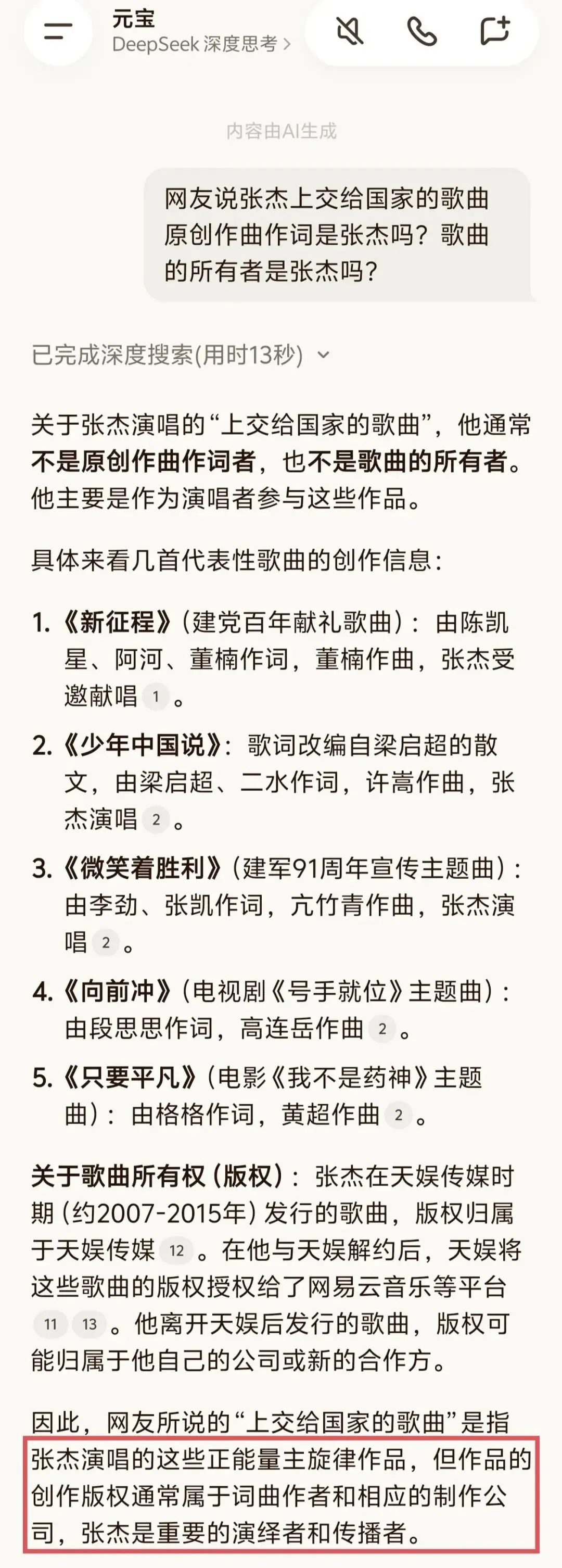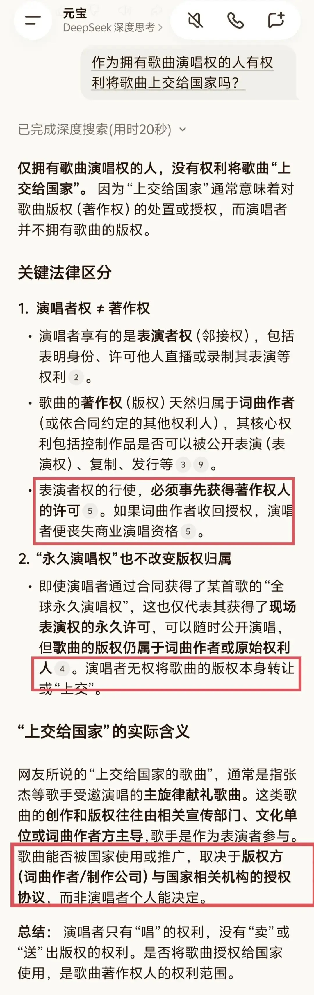 今天就结合主流AI平台查询结果,给大家做一次通俗易懂的科普,把歌曲著作权和演唱权讲明白,别让善意的赞美,变成不符合事实的误传。