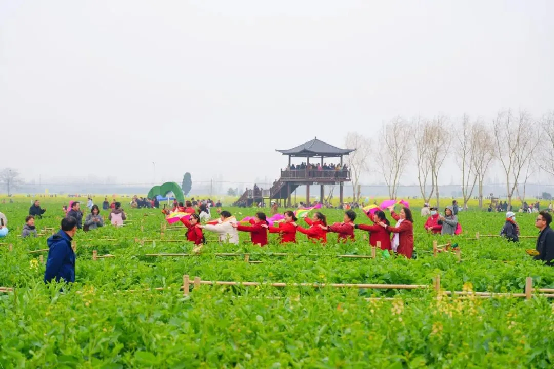“春风拂过古泽大地,七彩花海翻涌天际,秦简故里披上金衣,胡金店迎来了花期。”寥寥数笔,便将云梦独有的地域标识与田园风光融为一体,万亩油菜花海如金色波涛,让古老大地焕发出蓬勃生机。
