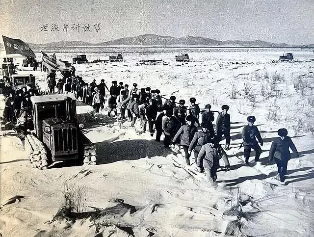 在1958年起的大规模开发时期,数万名垦荒者响应号召来到北大荒。他们初到之时,面临的是一无所有的困境。没有住处,就用树枝搭建简易帐篷;没有粮食,就省吃俭用、艰苦度日。“早起三点半,归来星满天,啃着冰冻馍,雪花汤就饭”,这句顺口溜生动地描绘了他们当时的艰辛生活。