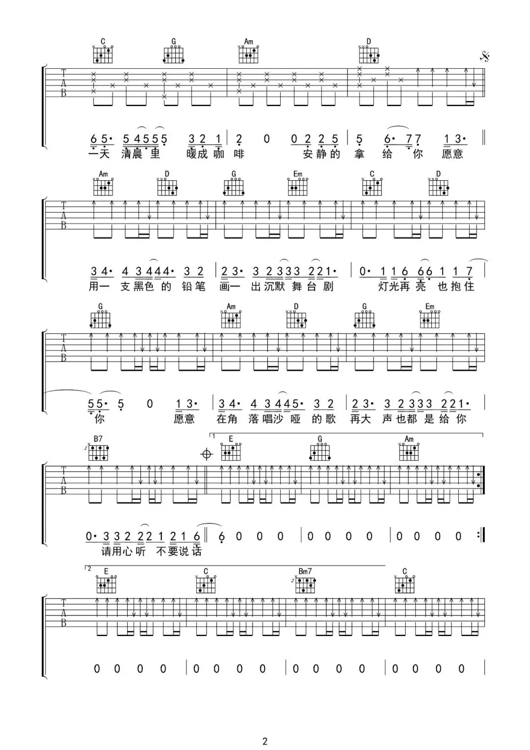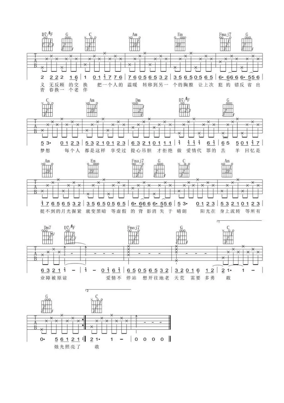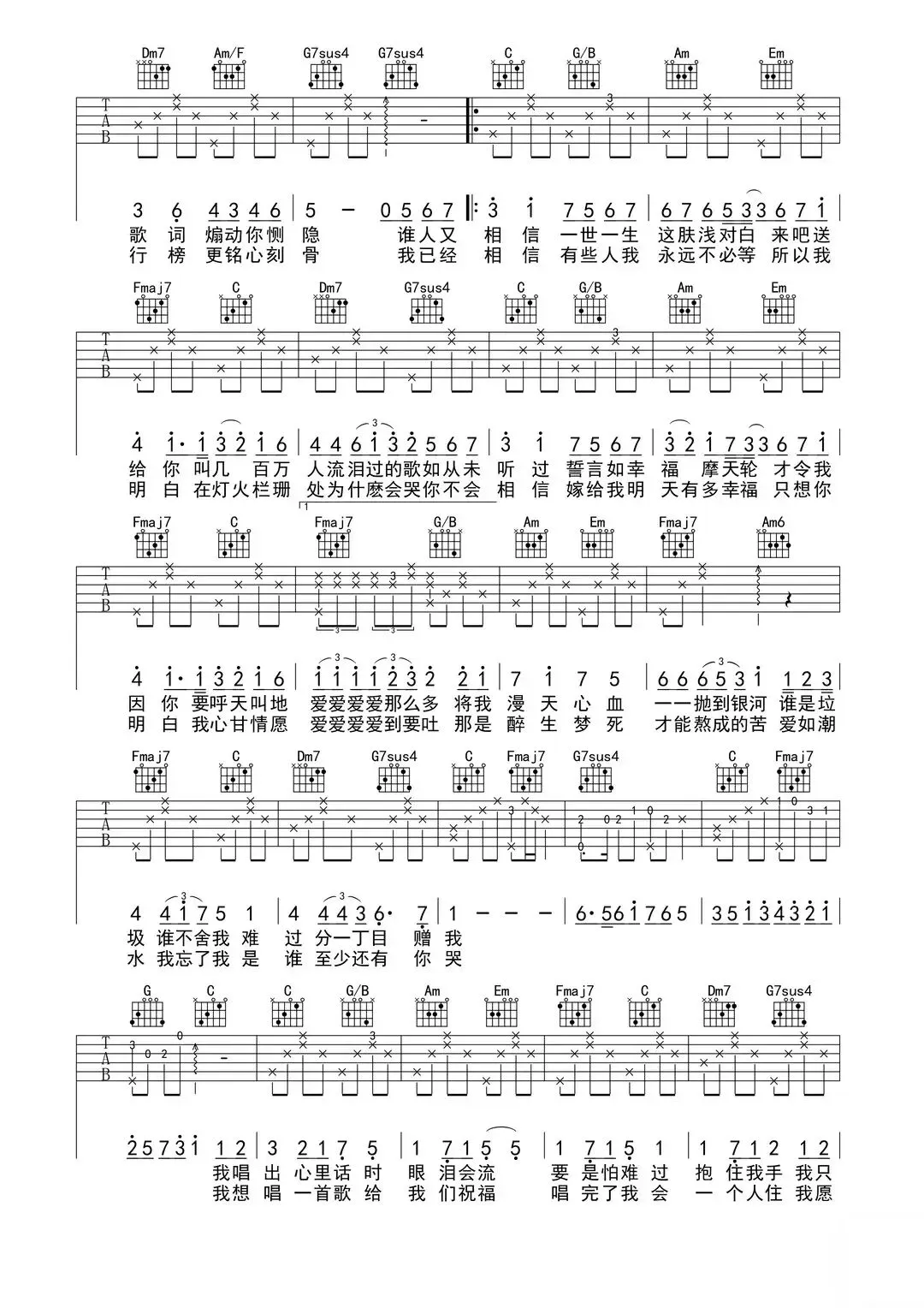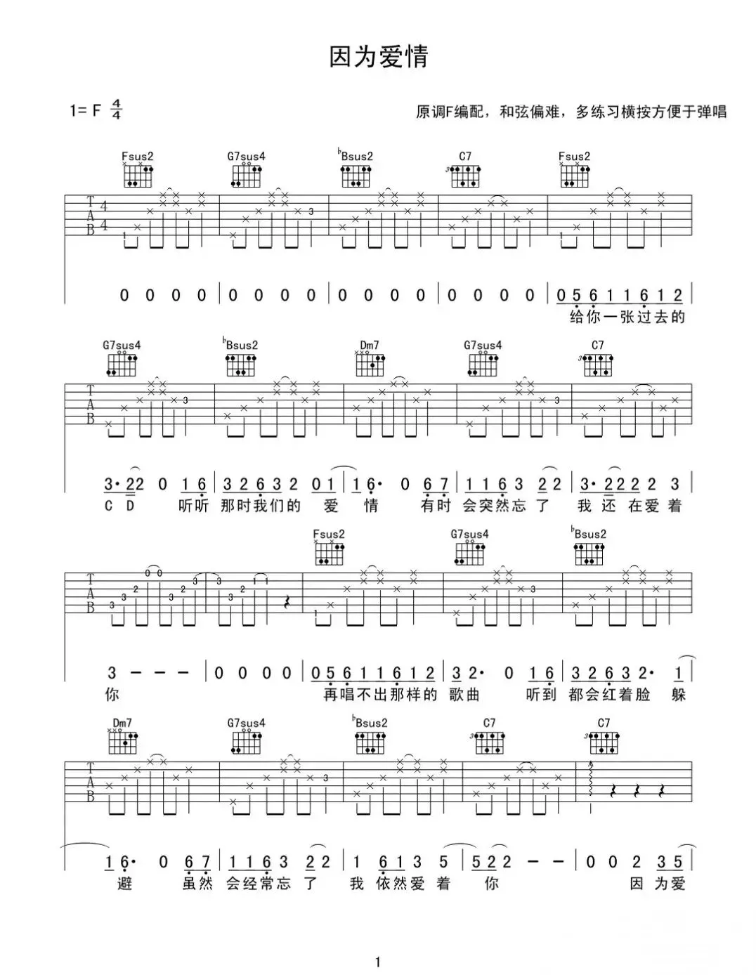 《因为爱情》是陈奕迅和王菲的合唱作品,2011年为电影《将爱情进行到底》演唱。歌曲旋律温柔,歌词写爱情里的美好与遗憾,合唱部分很有感染力。吉他版本适合新手,和弦简单,节奏舒缓,弹唱时能感受到歌曲里的浪漫氛围。
