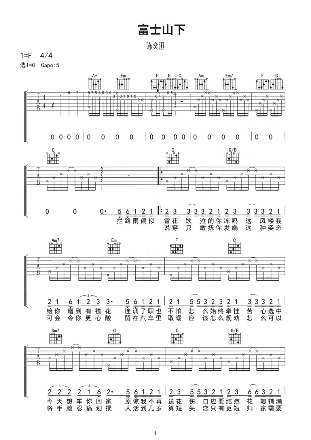 《富士山下》是粤语情歌巅峰之作,2006年发行。林夕用“富士山爱情论”隐喻放手哲学,陈奕迅的演唱克制却充满故事感,把爱而不得的遗憾唱得很真实。这首歌的吉他旋律线清晰,适合练习单音旋律弹奏,能锻炼手指灵活性,同时体会歌曲里的放手心境。