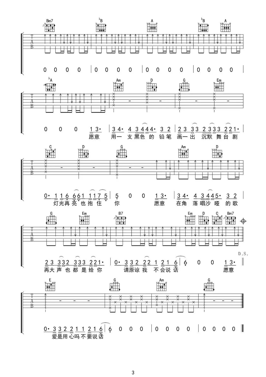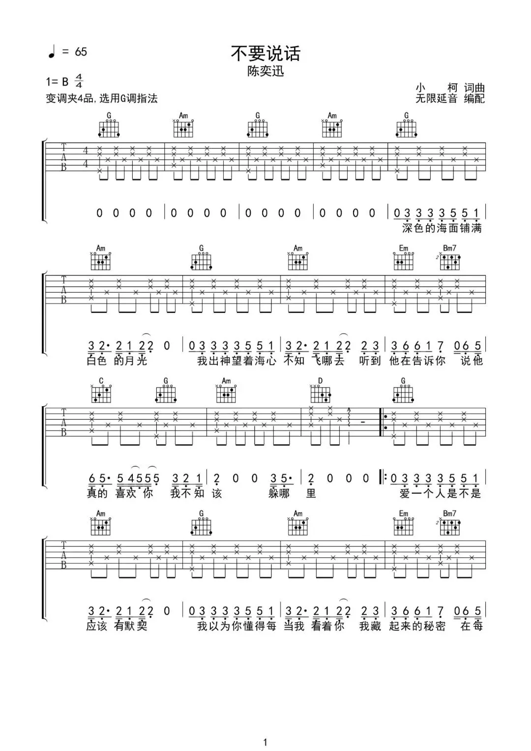 《不要说话》收录在2008年专辑《不想放手》,也是电影《时尚先生》的主题曲。歌曲以暗恋者的沉默心境为核心,讲的是目睹爱人移情别恋却未能表白的遗憾,旋律舒缓有叙事感。吉他伴奏以重复的分解和弦为主,不张扬却深入人心,适合用一把吉他自弹自唱,新手也能轻松驾驭。