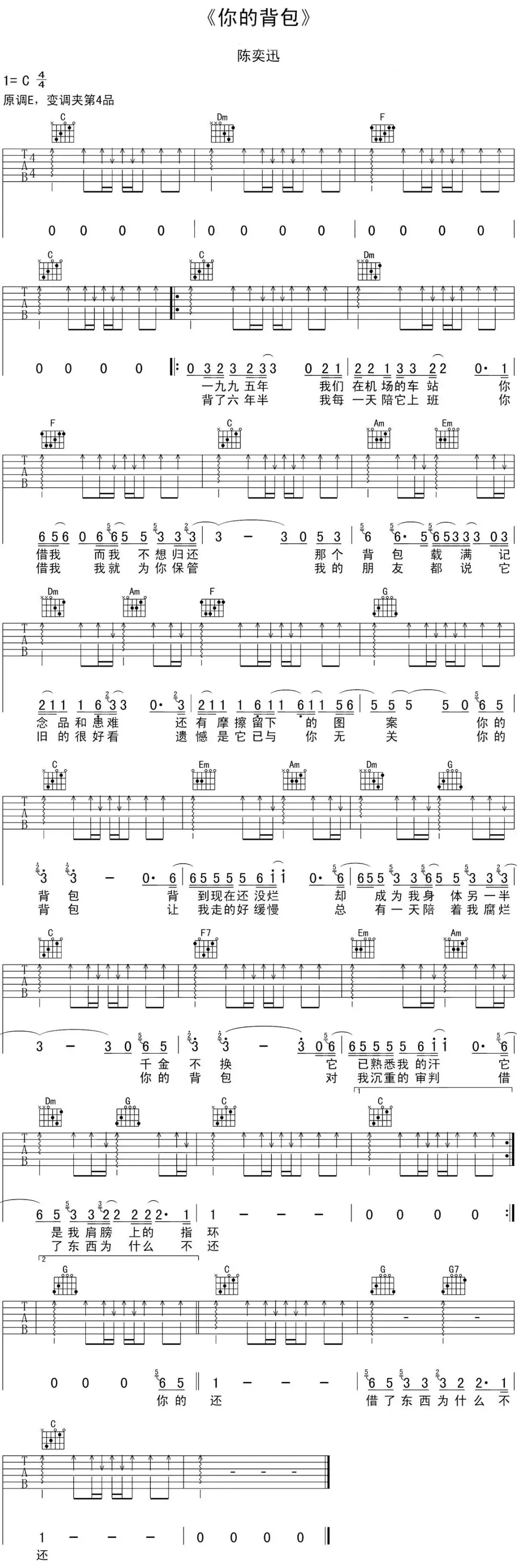 《你的背包》2002年发行,用背包作为情感载体,写尽爱情里的遗憾与不舍。歌词里“背包”的细节很真实,把两个人的过往藏在物品里,让人很容易代入情绪。这首歌的吉他编配简洁,和弦转换流畅,适合练习分解和弦,弹唱时能很好地传递歌曲里的怀旧感。