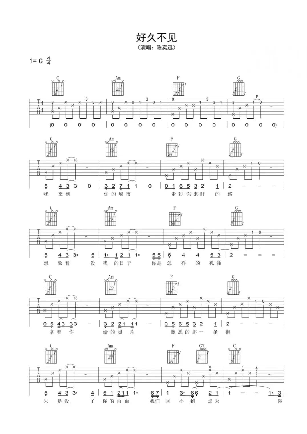 《好久不见》2007年发行,极简钢琴伴奏搭配陈奕迅的嗓音,把物是人非的情感唱得很细腻。歌词“我来到你的城市,走过你来时的路”没有修饰,却道尽重逢时的心酸。它的吉他版本很适合新手,用简单的和弦和慢节奏分解,就能唱出歌曲里的温柔与遗憾。