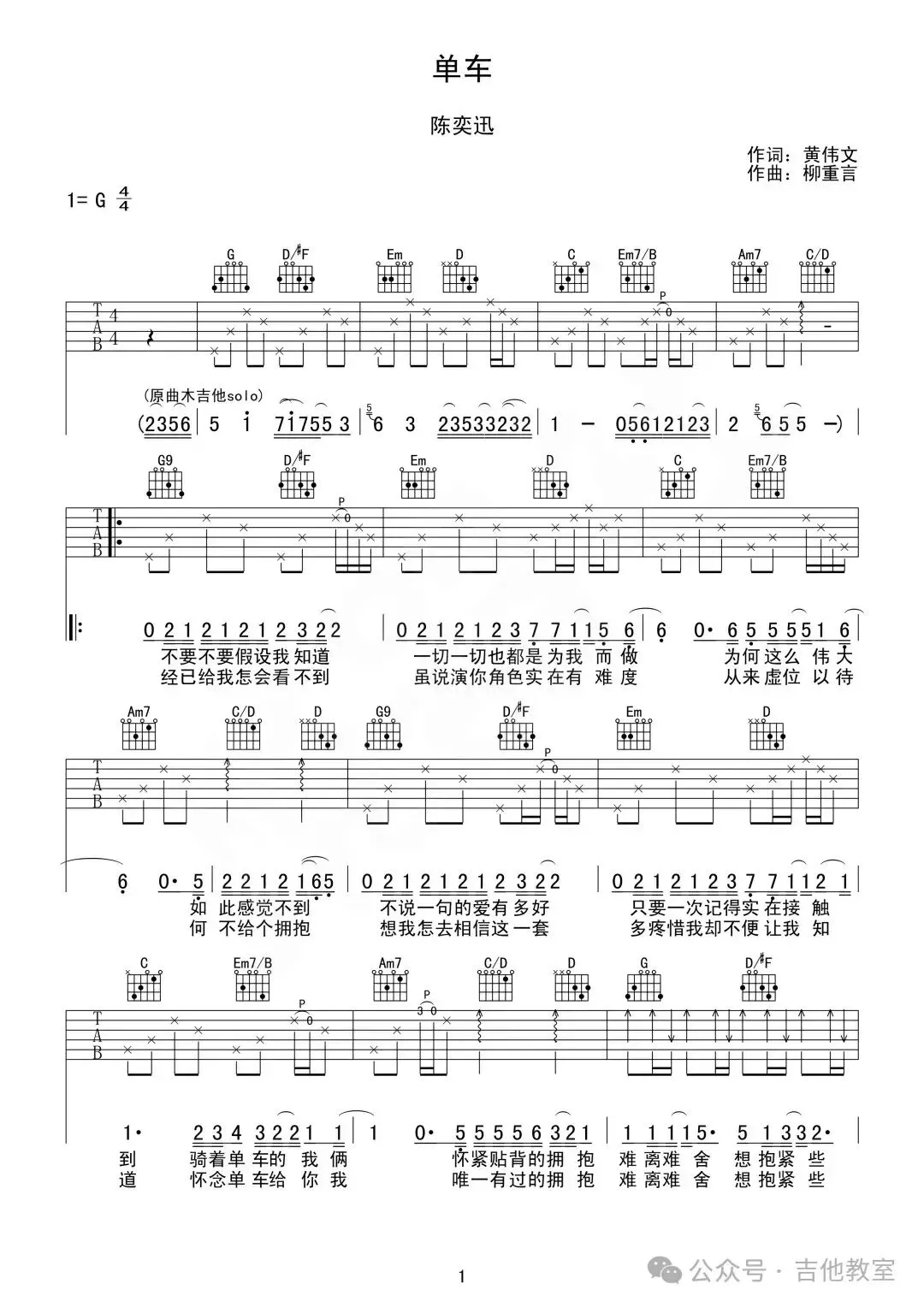 《单车》2001年发行,以父爱为主题,是很戳人的粤语歌曲。歌词写童年和父亲骑单车的经历,道尽沉默却厚重的父爱,没有华丽辞藻,却能让人感受到亲情的力量。吉他编配没有大横按,右手节奏简单,新手也能轻松弹唱,很适合用来练习表达亲情类的歌曲。