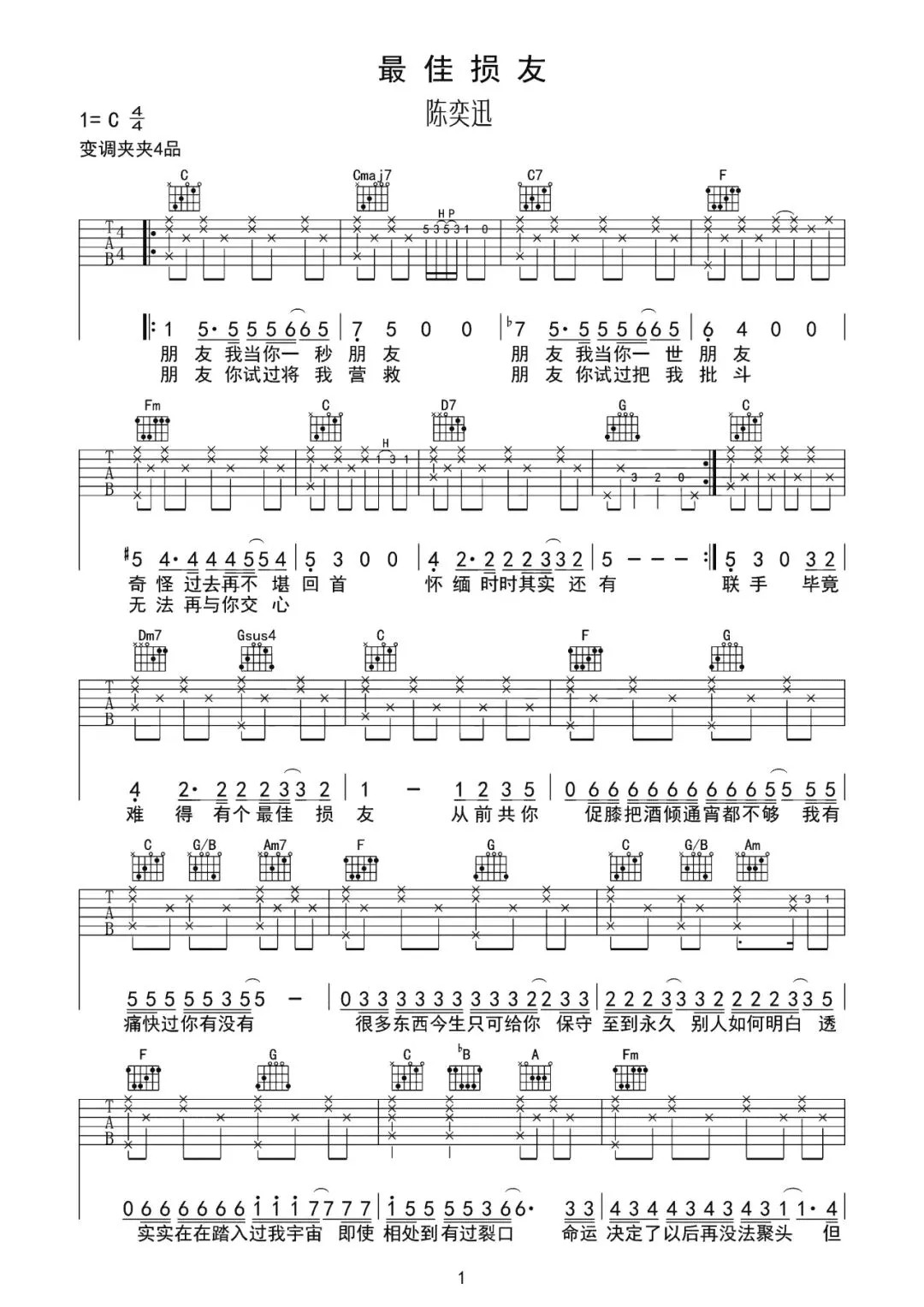 《最佳损友》2006年发行,写的是友情的破裂与遗憾。背后藏着黄伟文和杨千嬅的友情故事,因误会决裂,后来在歌声中和解。歌词没有夸张修饰,却把朋友间的渐行渐远唱得很真实。吉他弹唱时,用慢节奏的分解和弦,能很好地传递歌曲里的伤感与遗憾。