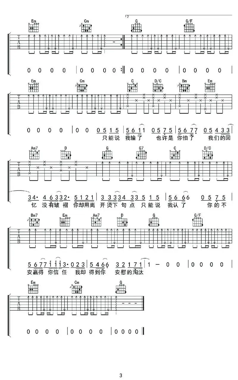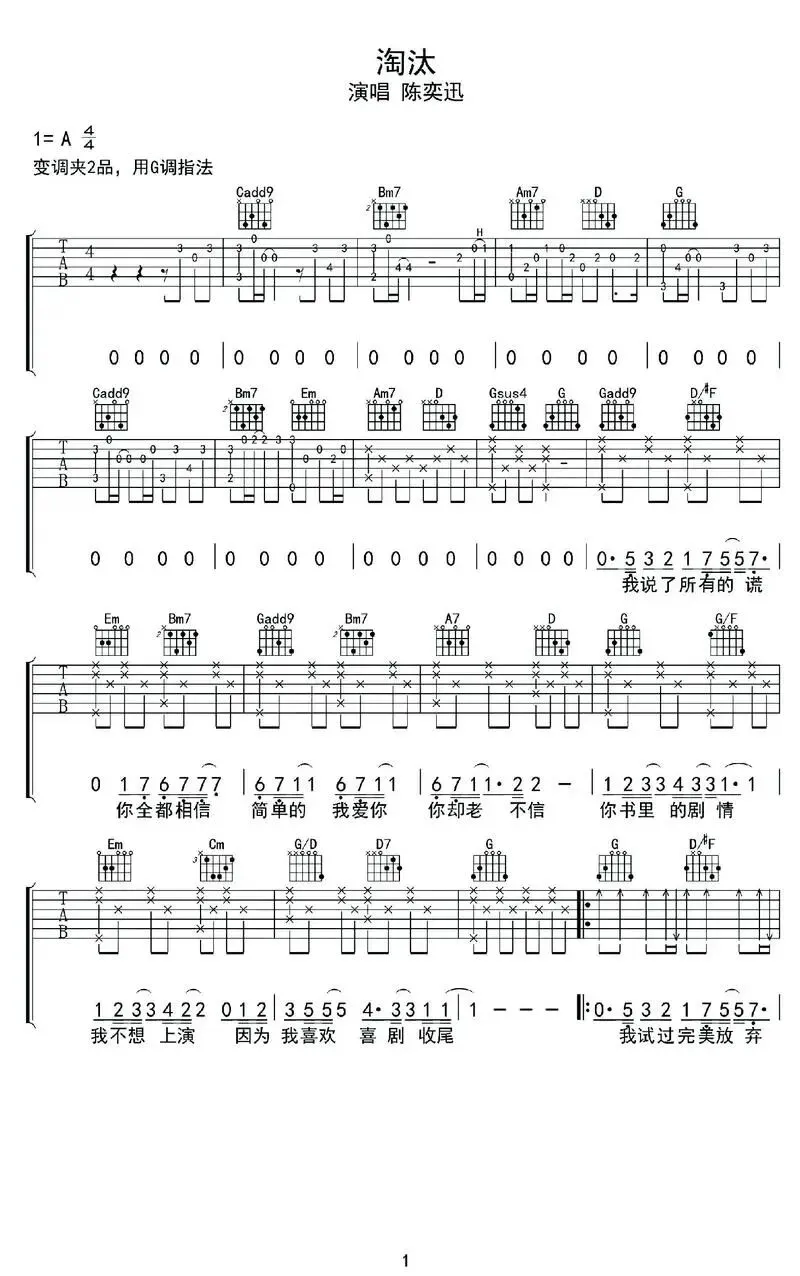 《淘汰》2007年发行,是陈奕迅和周杰伦的合作作品,也是周杰伦开办公司后第一首为他人创作的歌。歌词写爱情里的信任崩塌,“我说了所有的谎,你全都相信”,道尽分手时的无奈与清醒 。它的吉他编配简洁,适合练习慢节奏弹唱,传递歌曲里的体面放手态度。